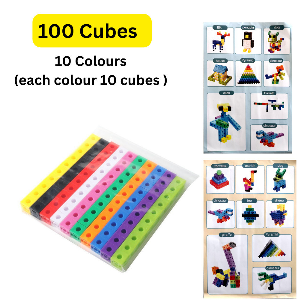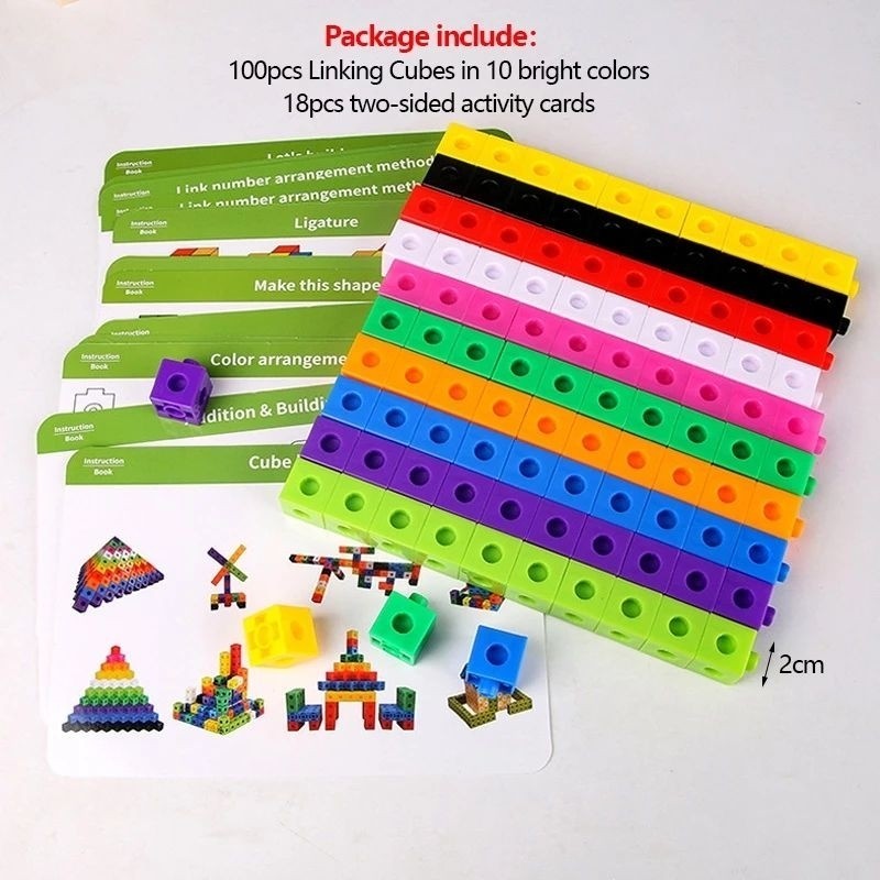 [100cubes+ Cards] Math Linking Cubes Number Blocks Building Block Unifix Cube