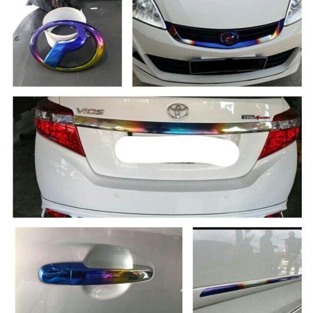 [10cm x 1.2Meters] Titanium Sticker Car Wrap Wrapping Half Blue Rainbow Chrome Decal Body Sticker