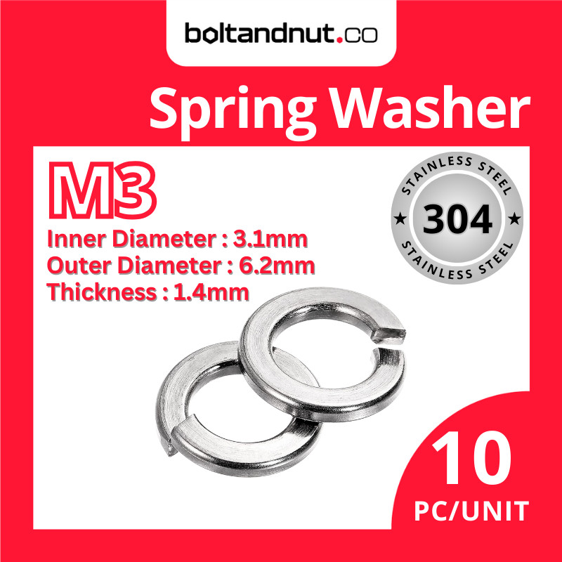 [10pcs] Spring Washer DIN127B | SUS 304 Stainless Steel Grade A2-70| M2 M2.5 M3 M3.5 M4 M5 M6 M8 M10 M12 | Washer Spring