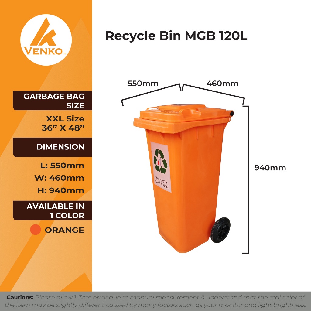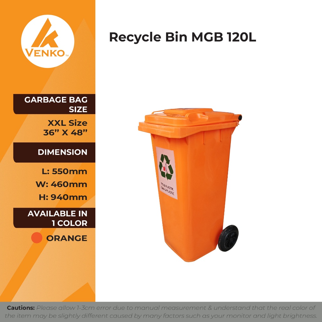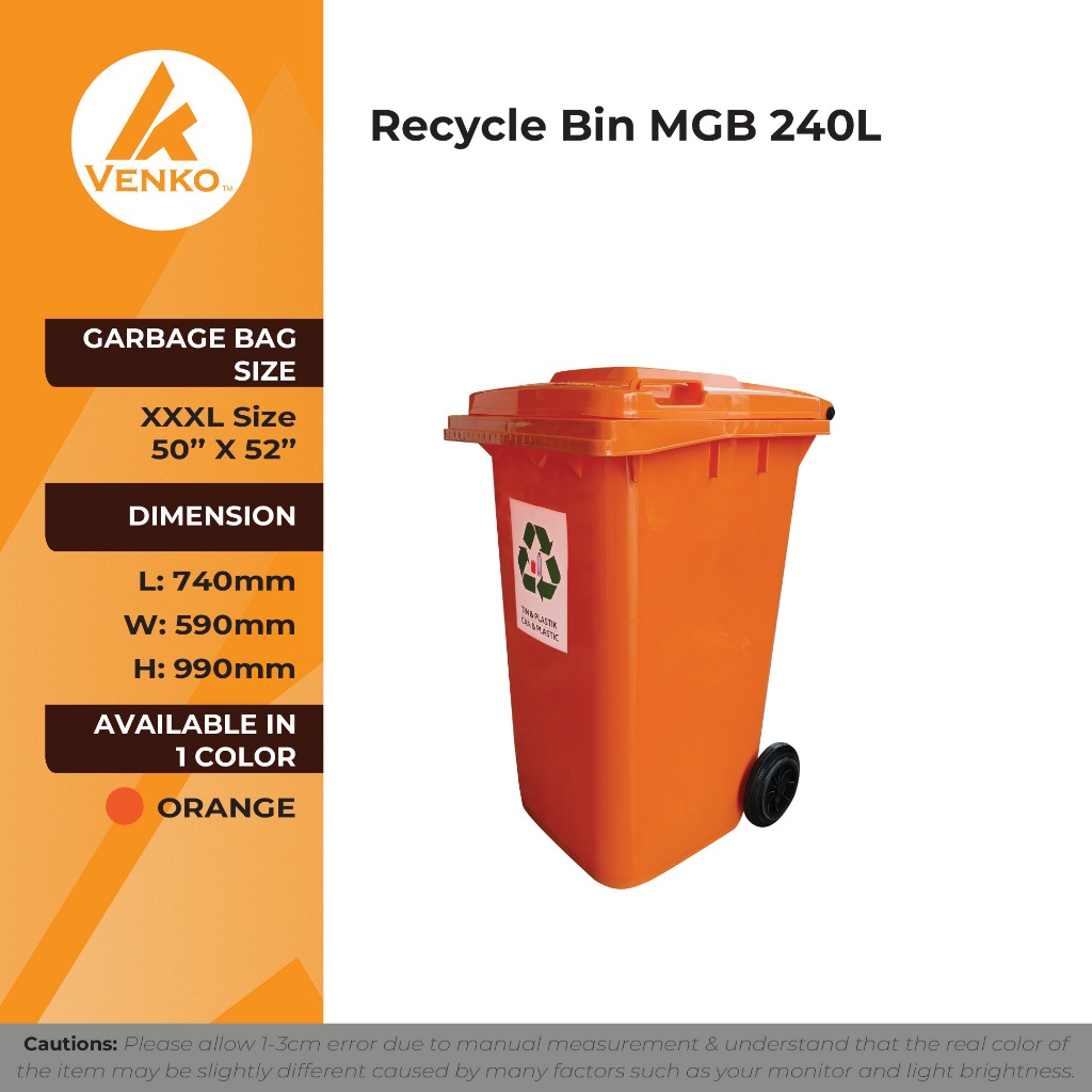 [120L / 240L] Tong Sampah Beroda Kitar Semula / Recycle Mobile Garbage Bin Warna Biru, Oren, Coklat