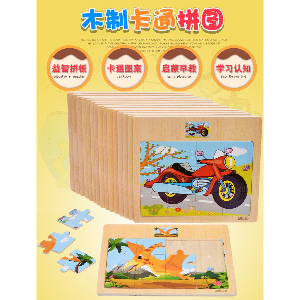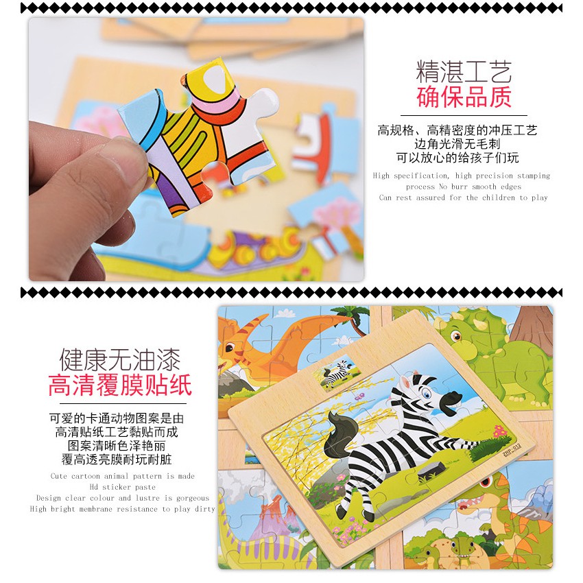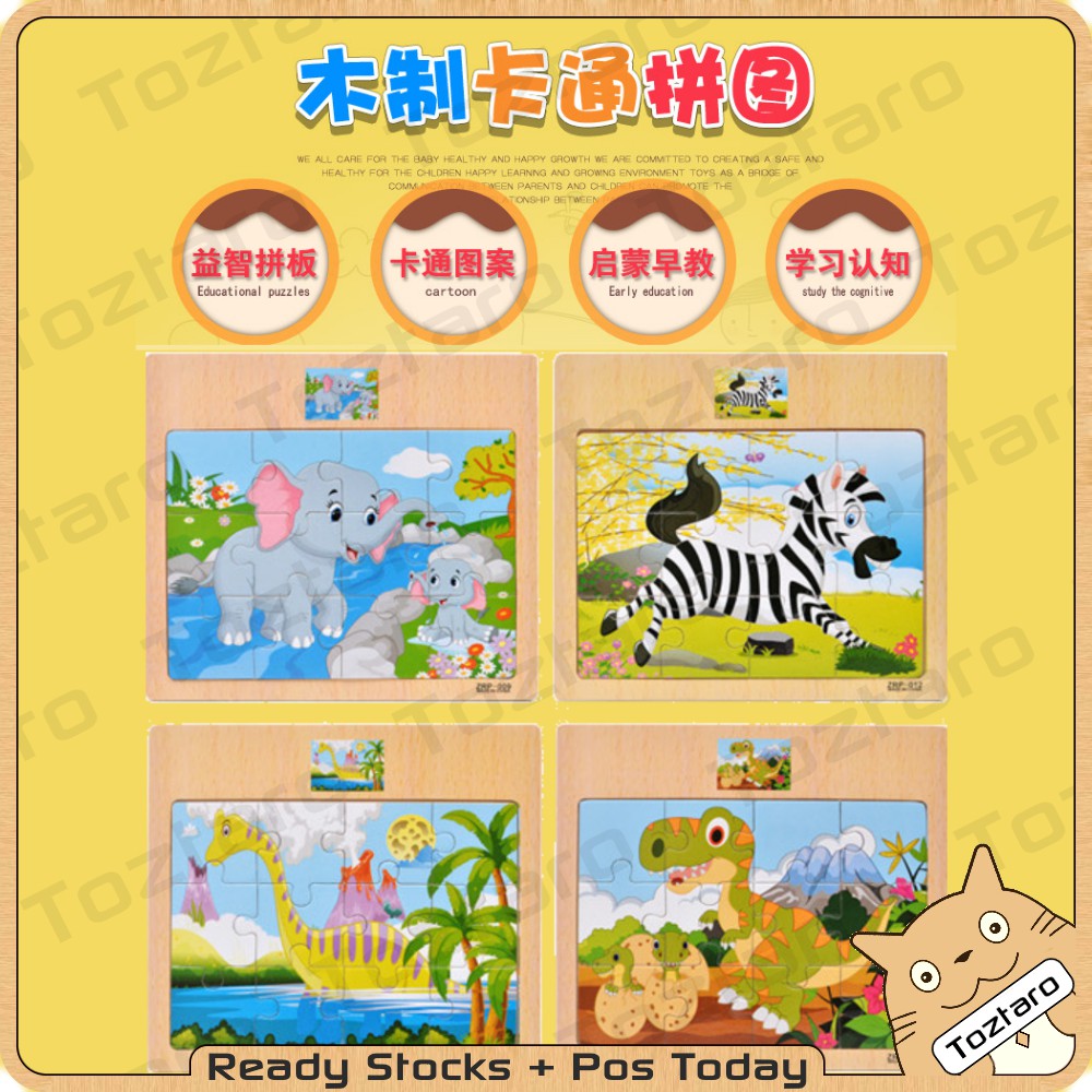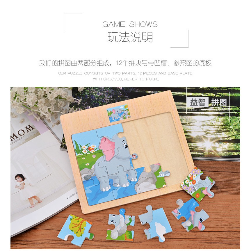 [12blocks] - Kids Wooden Puzzle Kids Education Wooden Jigsaw Puzzle Kids Toys Cartoon Puzzle Early Learning Montessori