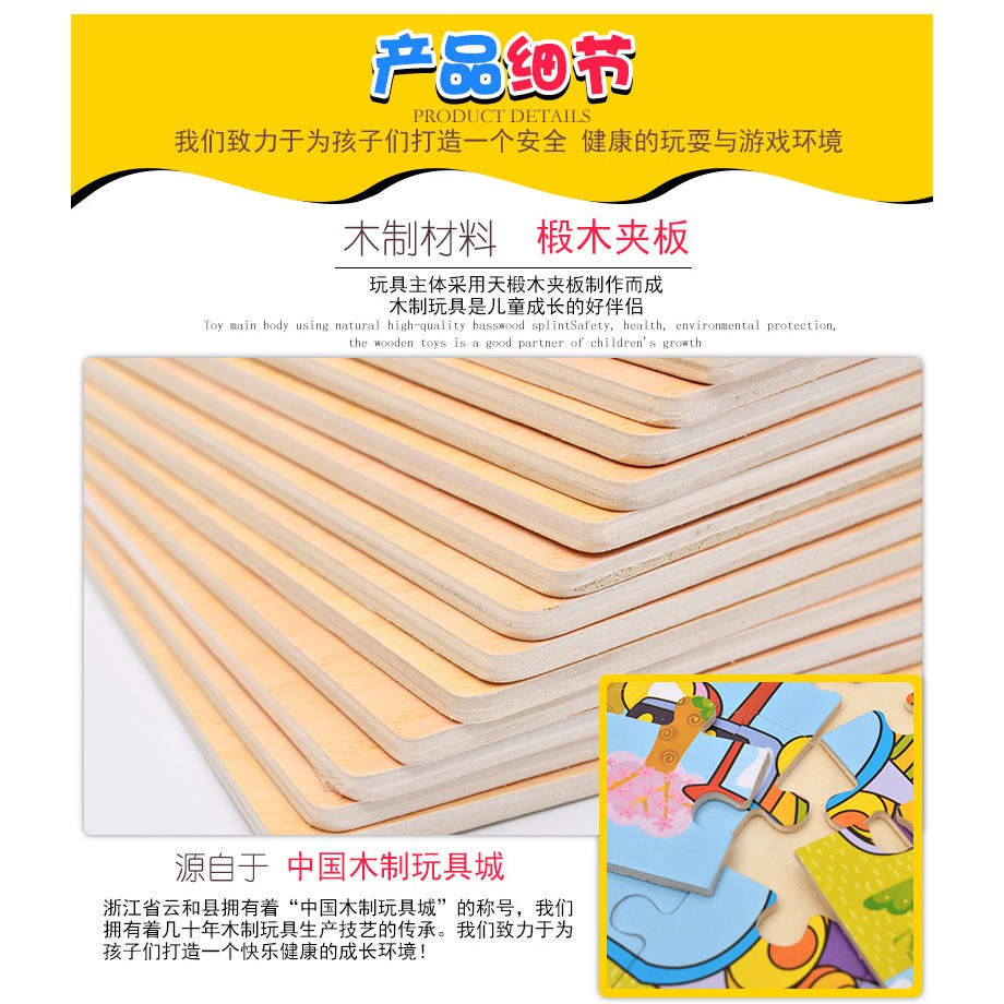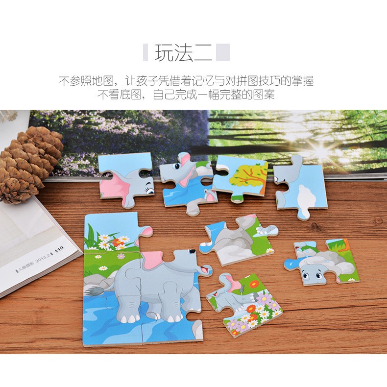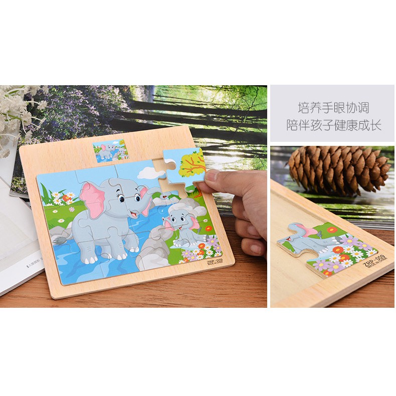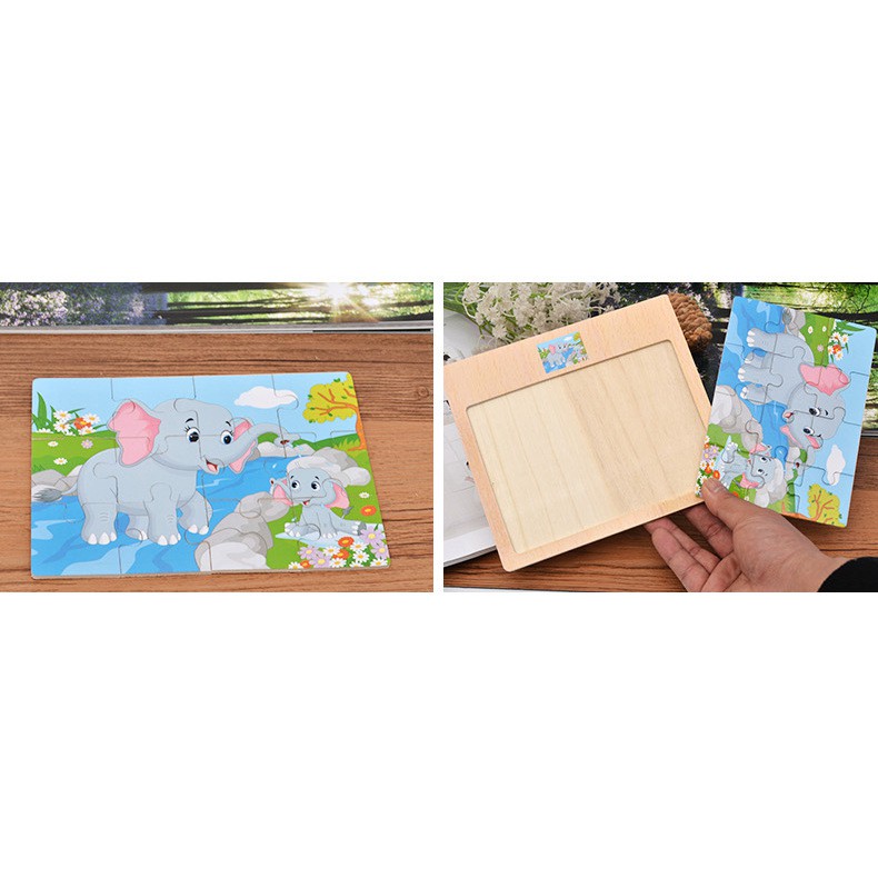 [12blocks] - Kids Wooden Puzzle Kids Education Wooden Jigsaw Puzzle Kids Toys Cartoon Puzzle Early Learning Montessori