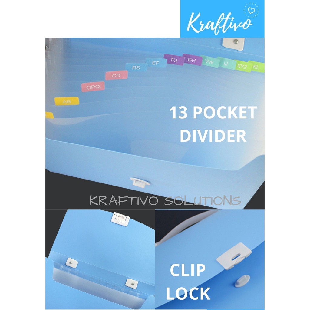 [ 13 DIVIDER ] A4 KIDARIO/BILI CLIPLOCK EXPANDING FILE WITH HANDLE / DOCUMENT BAG 13 LAPIS A4 / KEF-1201 / C-6016