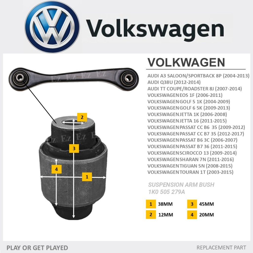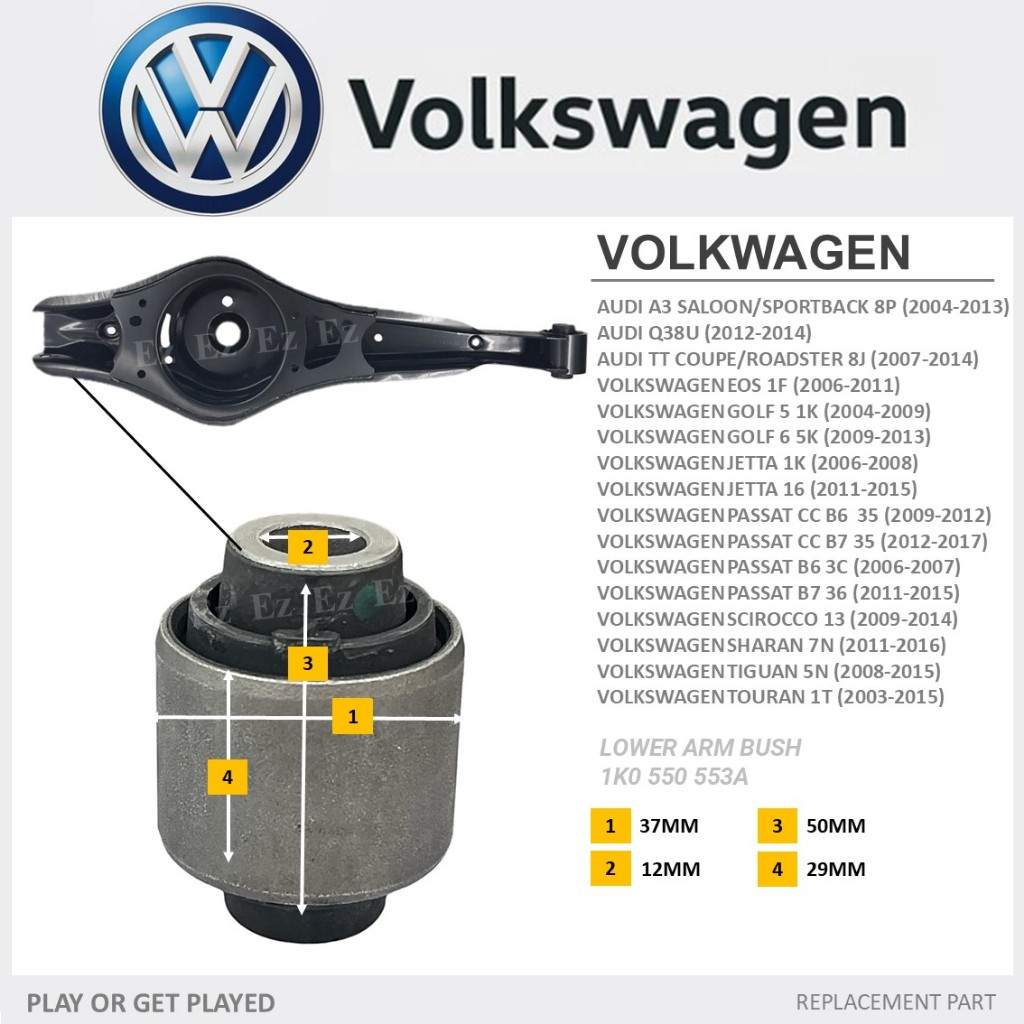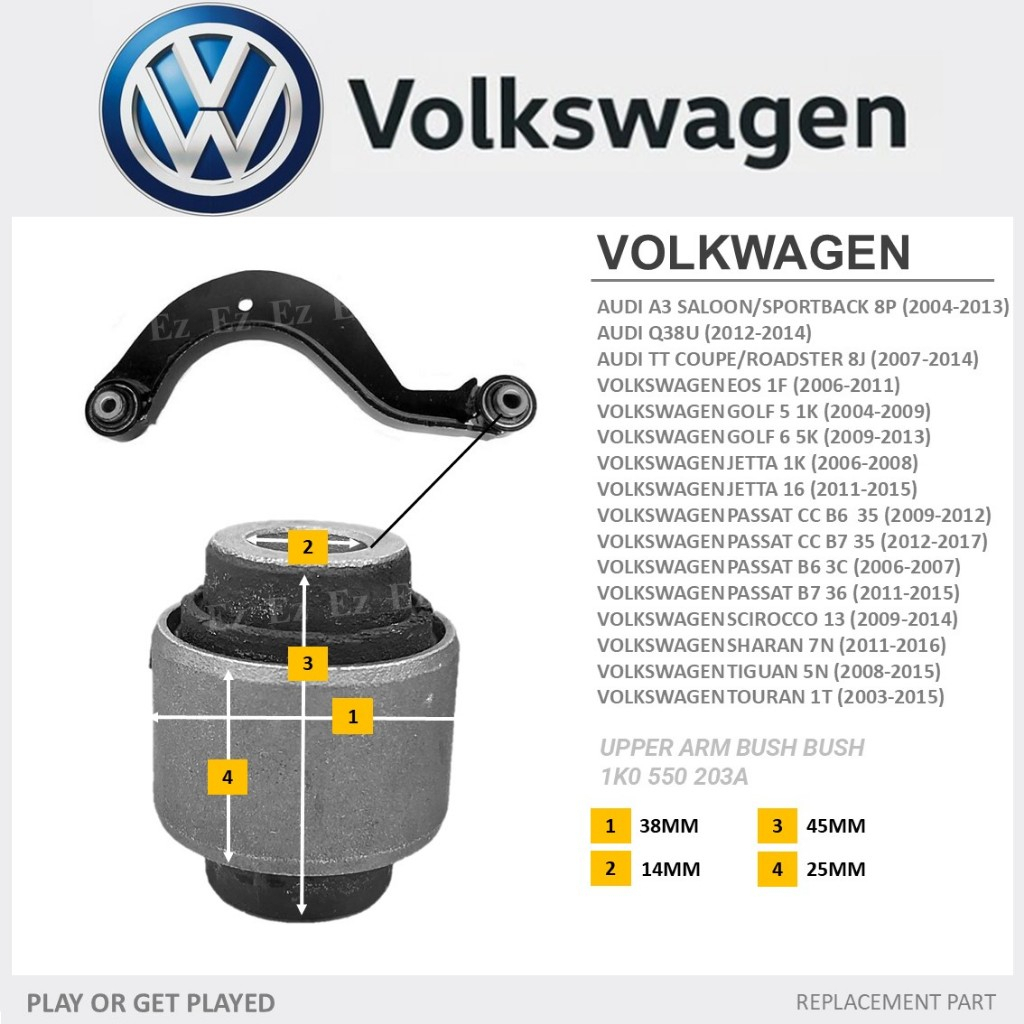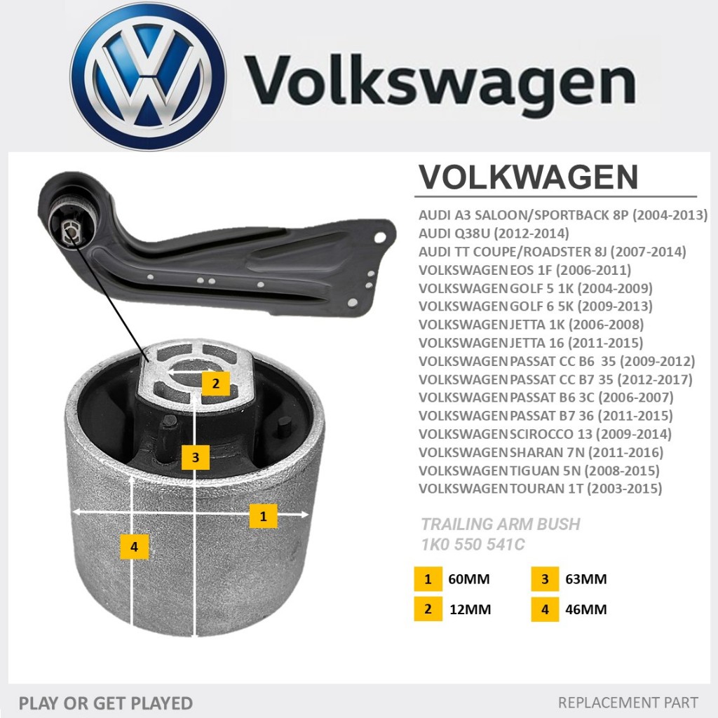 [14 IN 1] - REAR LOWER UPPER SUSPENSION TRAILING ARM BUSH FOR AUDI A3 VOLKSWAGEN TIGUAN GOLF JETTA PASSAT TIGUAN TOURAN