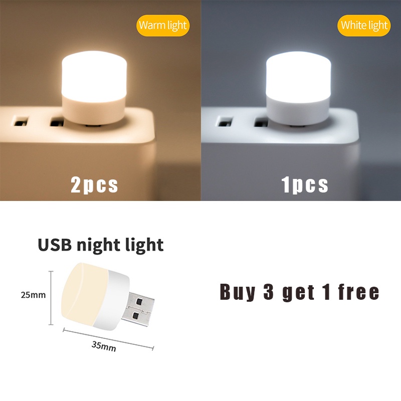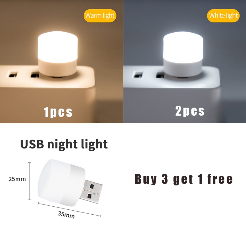 [1Free] Portable USB LED Light Plug-in Mini Night Light Bulb Eye Protection Lamp 5V Desk Reading Lamp USB Light for for Bedroom, Bathroom, Nursery, Hallway, Kitchen Car USB Atmosphere Ligh