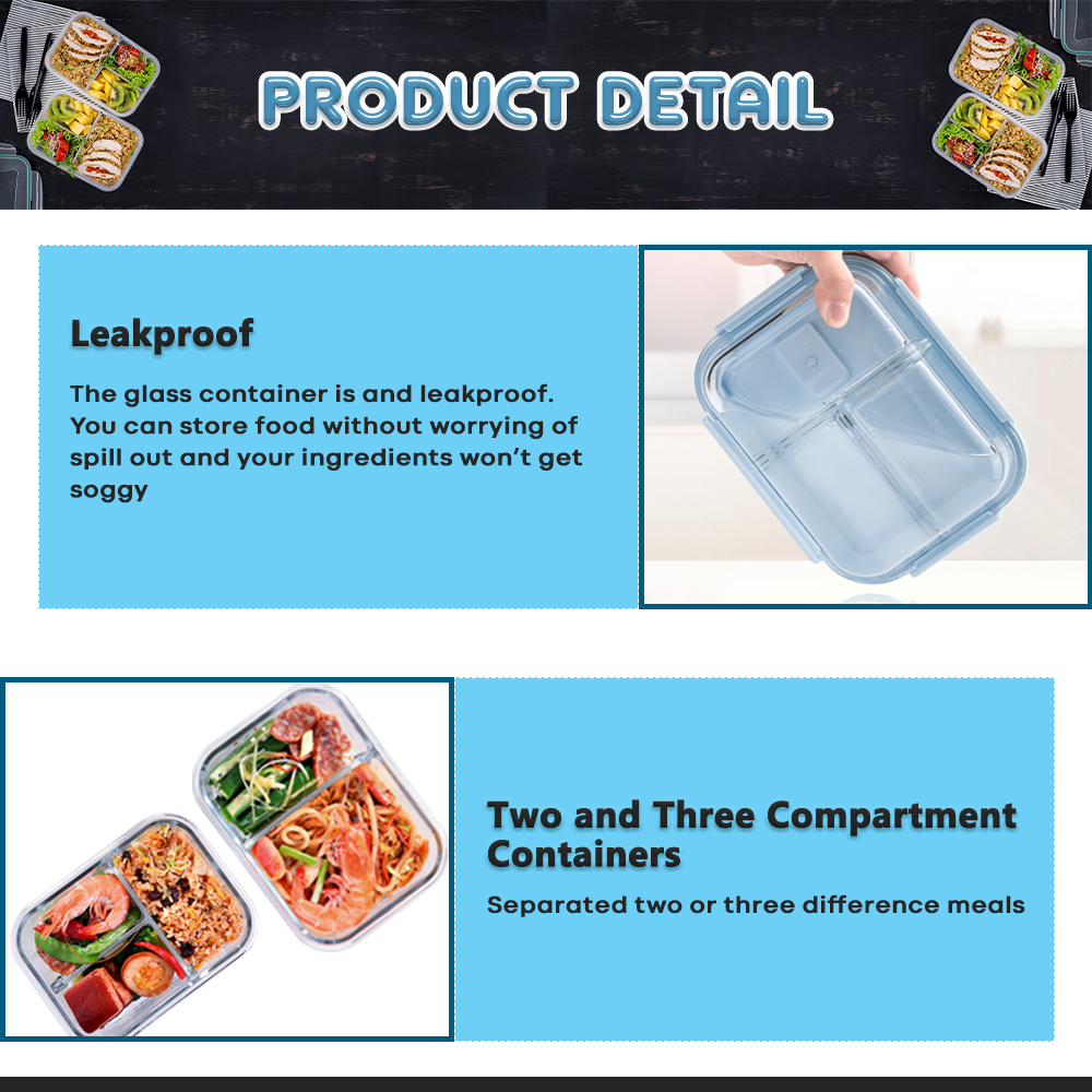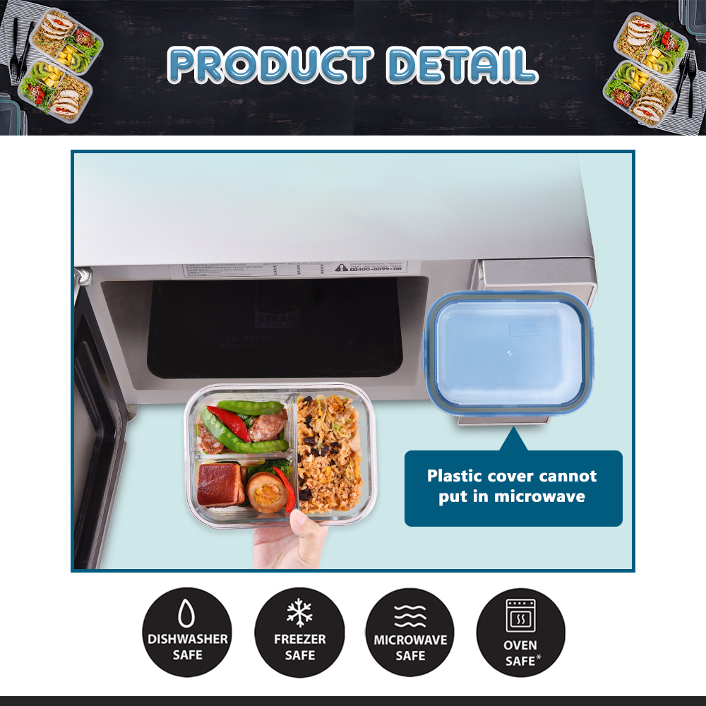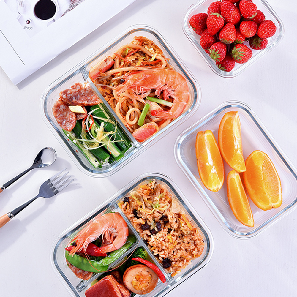 [1PC] Airtight Fresh-Keeping Borosilicate Glass Lunch Box Oven Safe 2/3 Compartments Food Storage Container