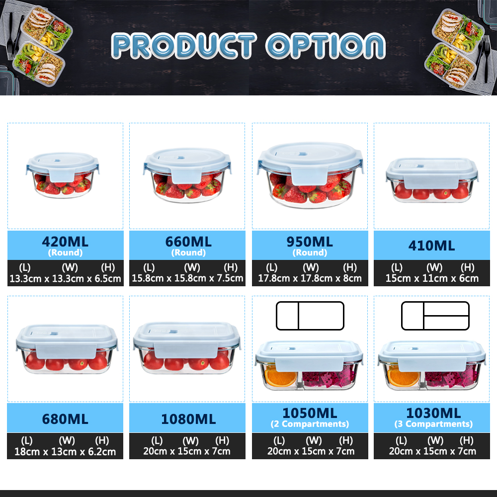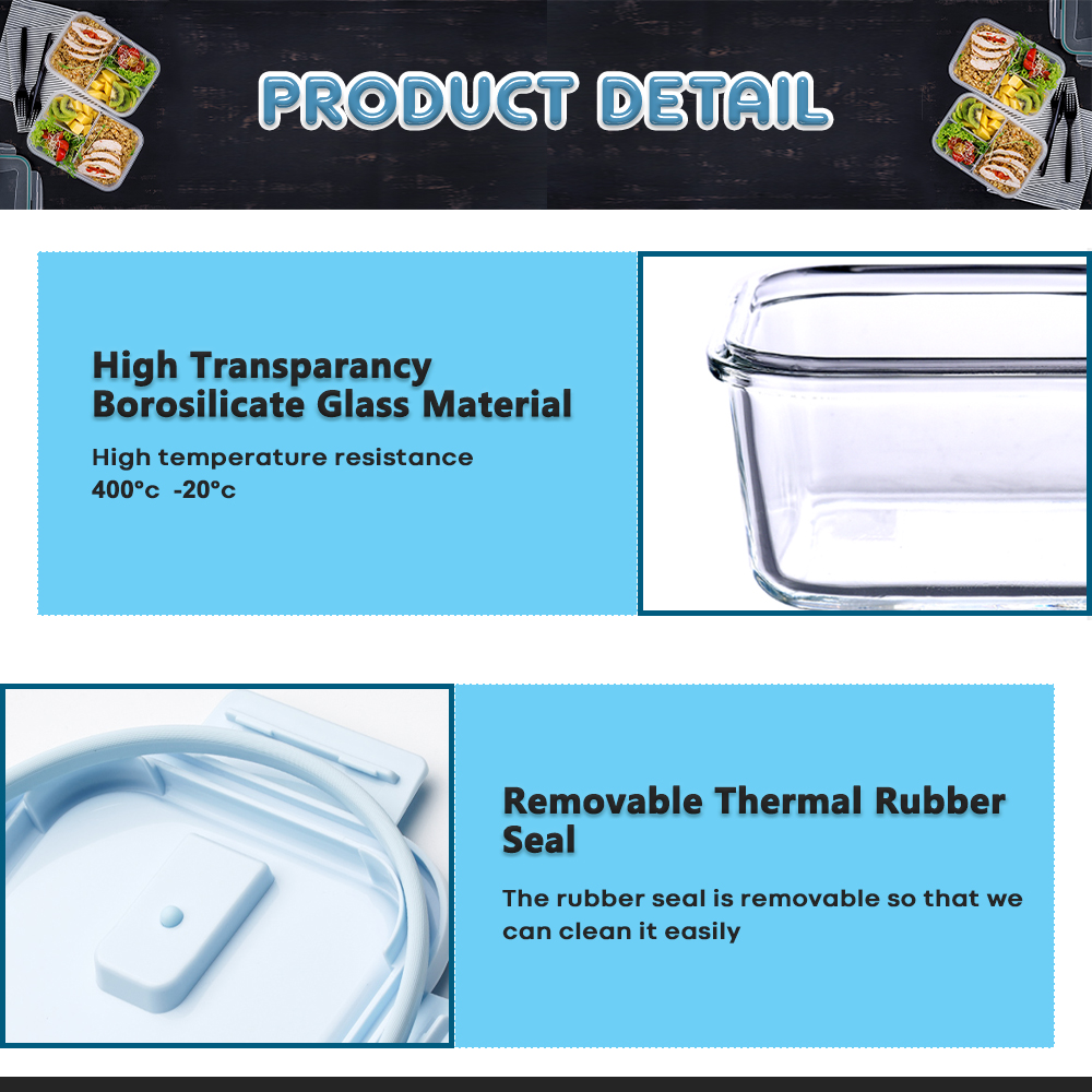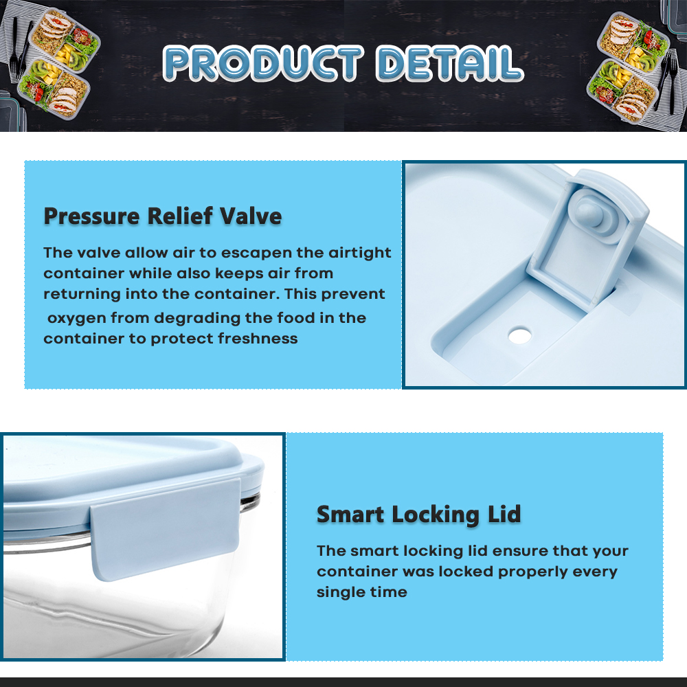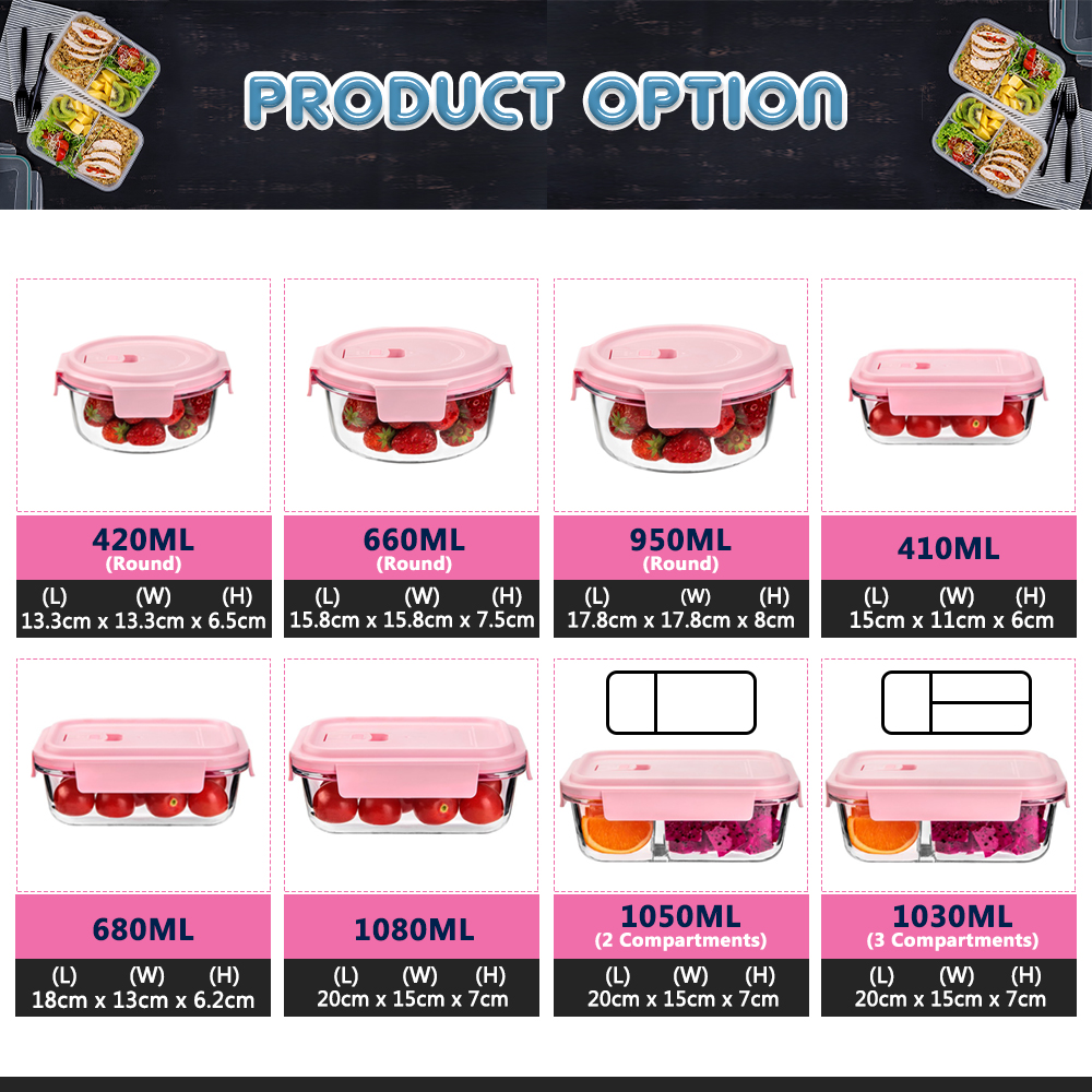 [1PC] Airtight Fresh-Keeping Borosilicate Glass Lunch Box Oven Safe 2/3 Compartments Food Storage Container