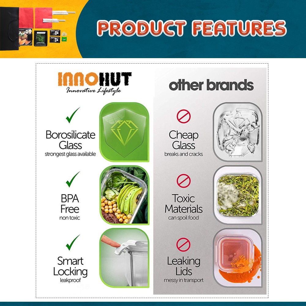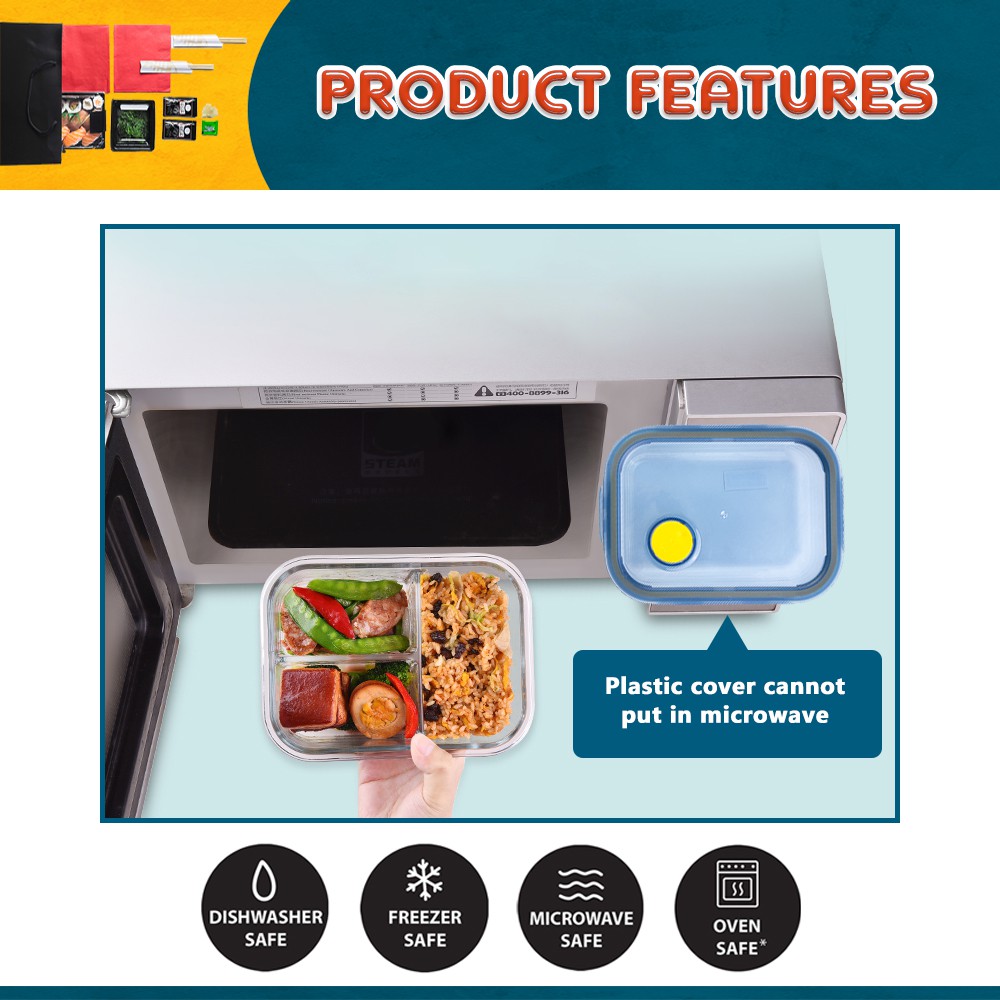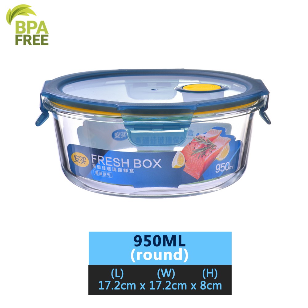 [1PC] Innohut Airtight High Heat Resistant Glass Container Food Storage Lunch Box (Yellow Blue Series)