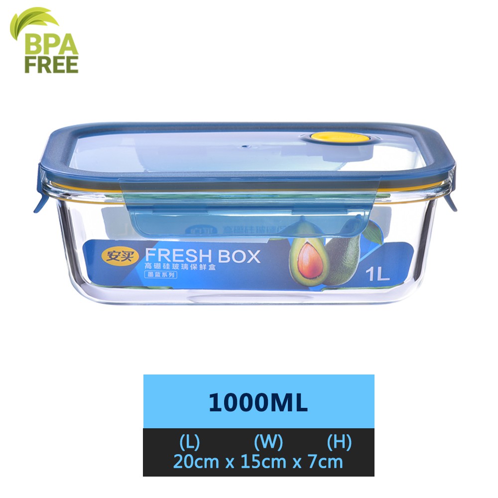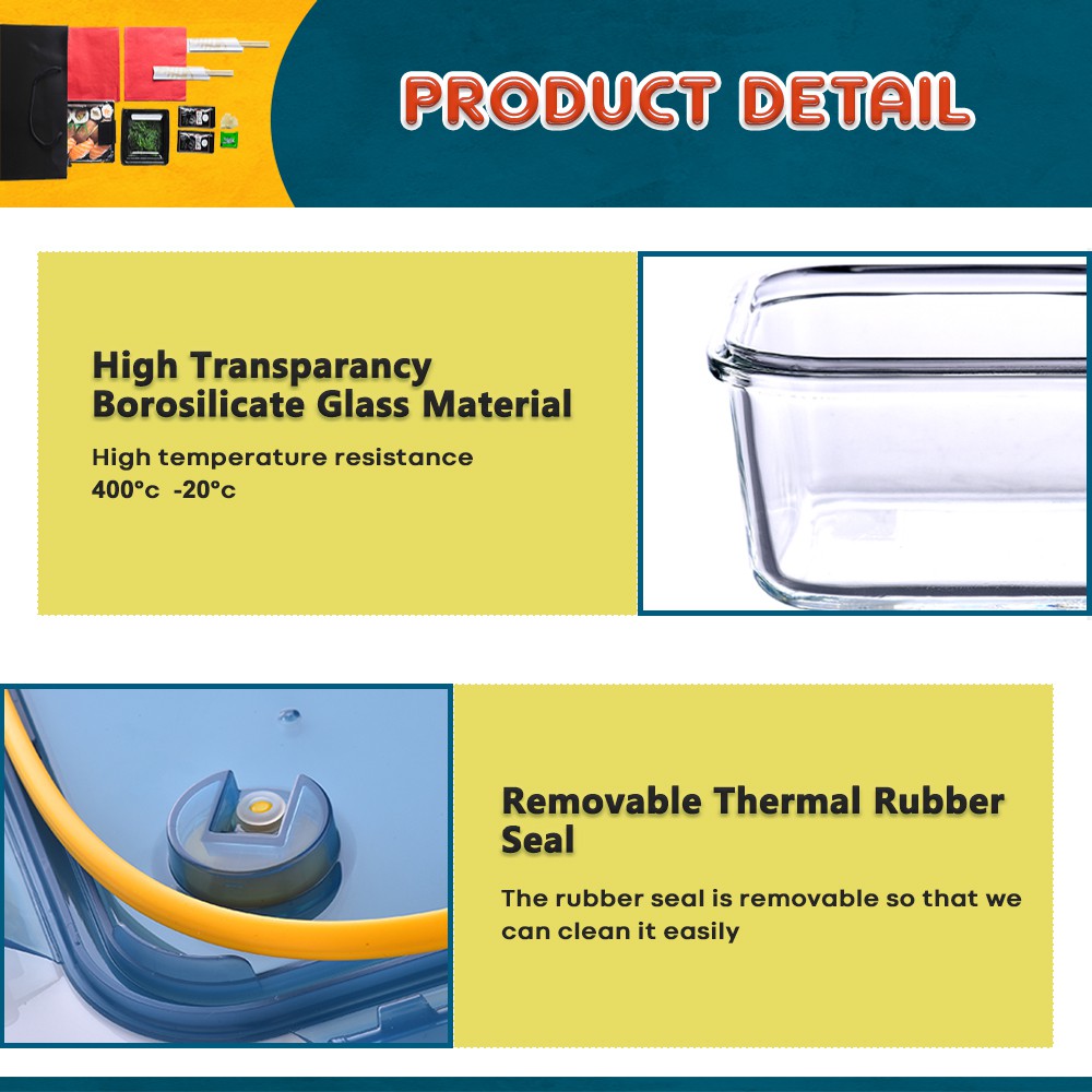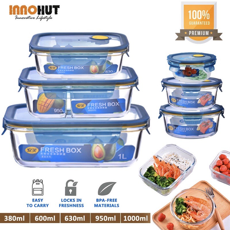 [1PC] Innohut Airtight High Heat Resistant Glass Container Food Storage Lunch Box (Yellow Blue Series)