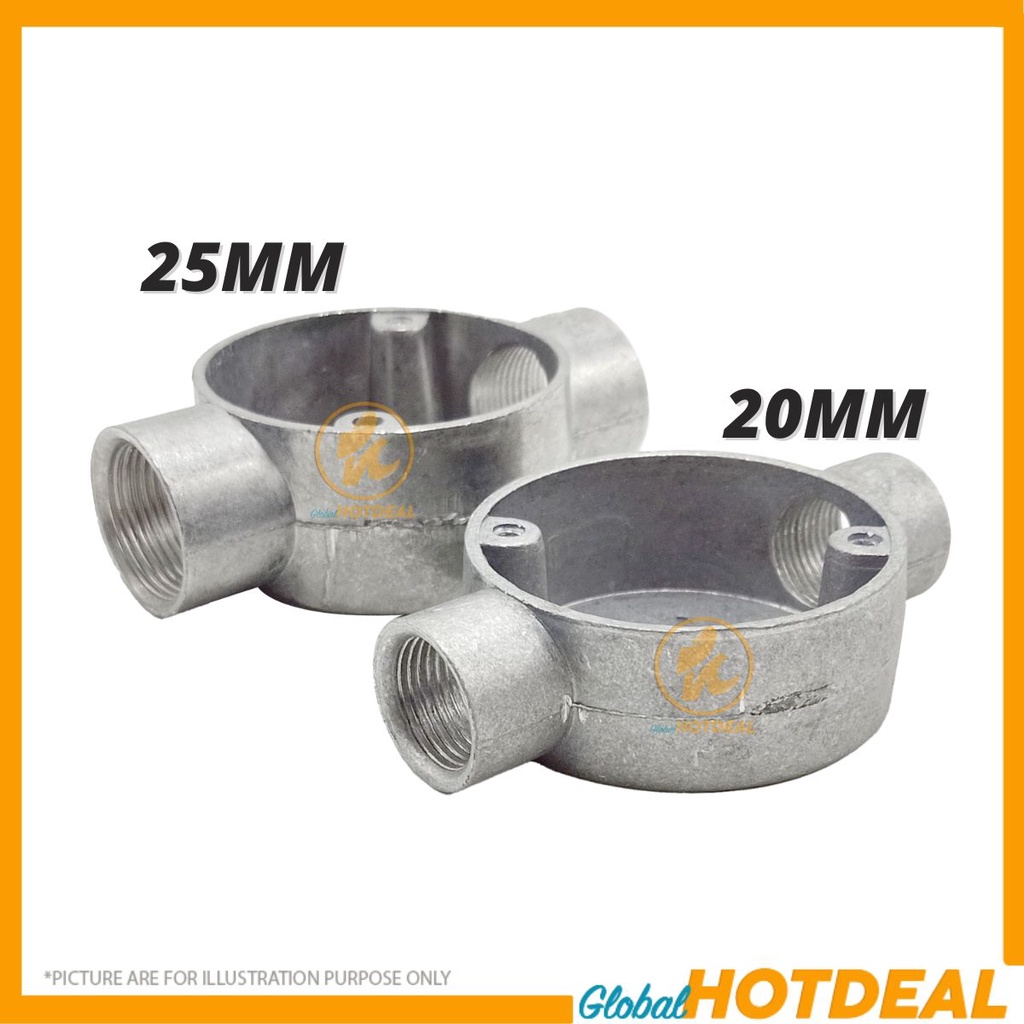 [1PC] Metal Conduit Circular Junction Box Fitting 20mm 25mm Joint Pipe Connectors Penyambung Paip Besi Kotak Joint Steel