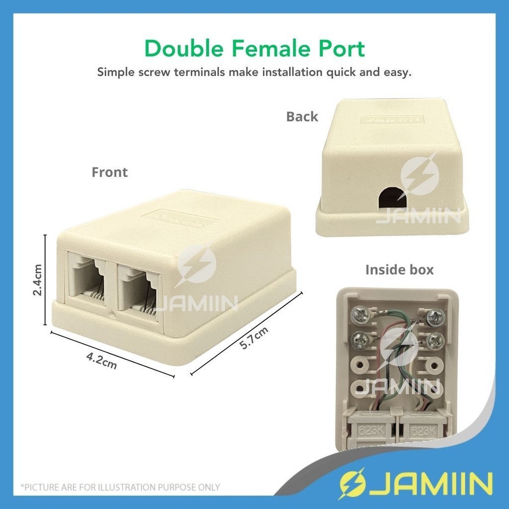[1PC] RJ11 Single/Dual Port 6P4C Female Telephone Socket Wall Mounted Box Socket Box Connector Adaptor Telekom