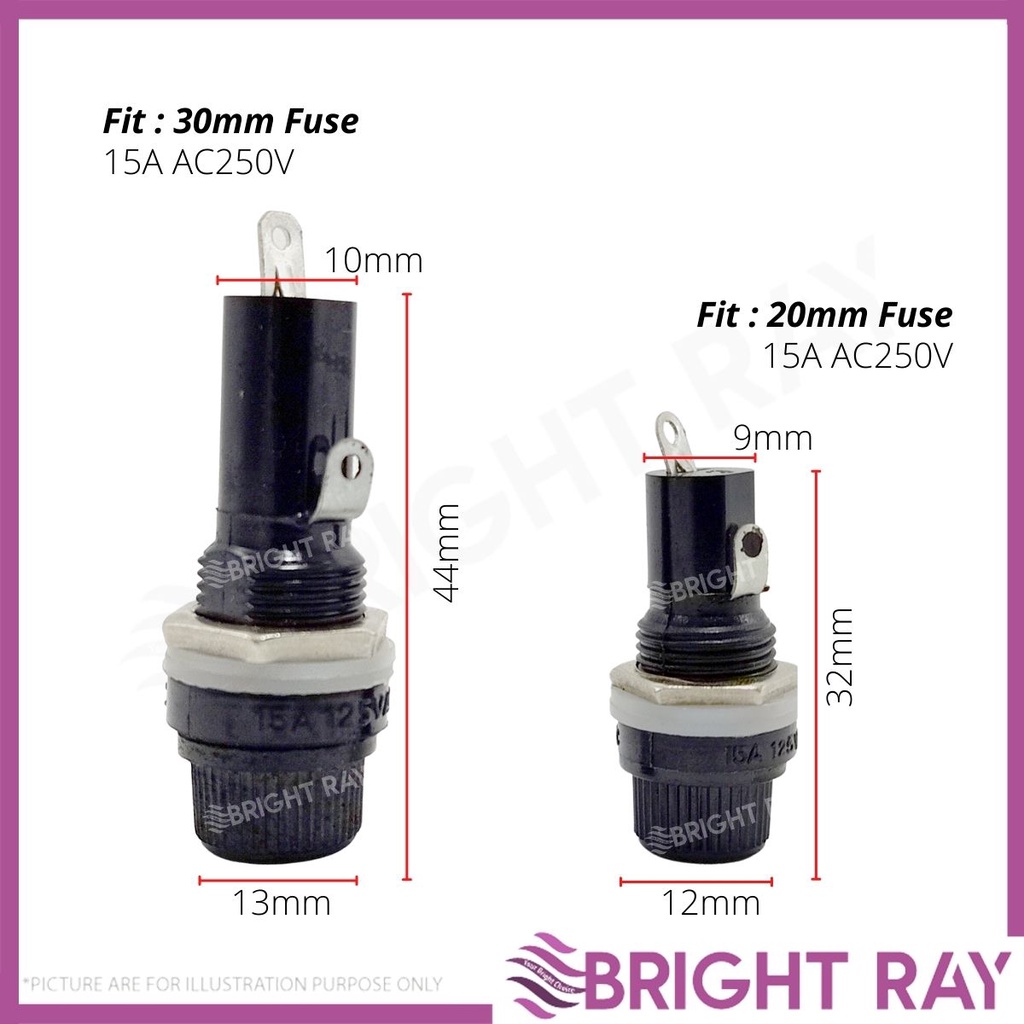 [1PC] SCREW type Fuse Holder 15A AC250V Glass Fuse Holder 5mm x 20mm / 6mm x 30mm Mounted Screw Cap Fuse Holder