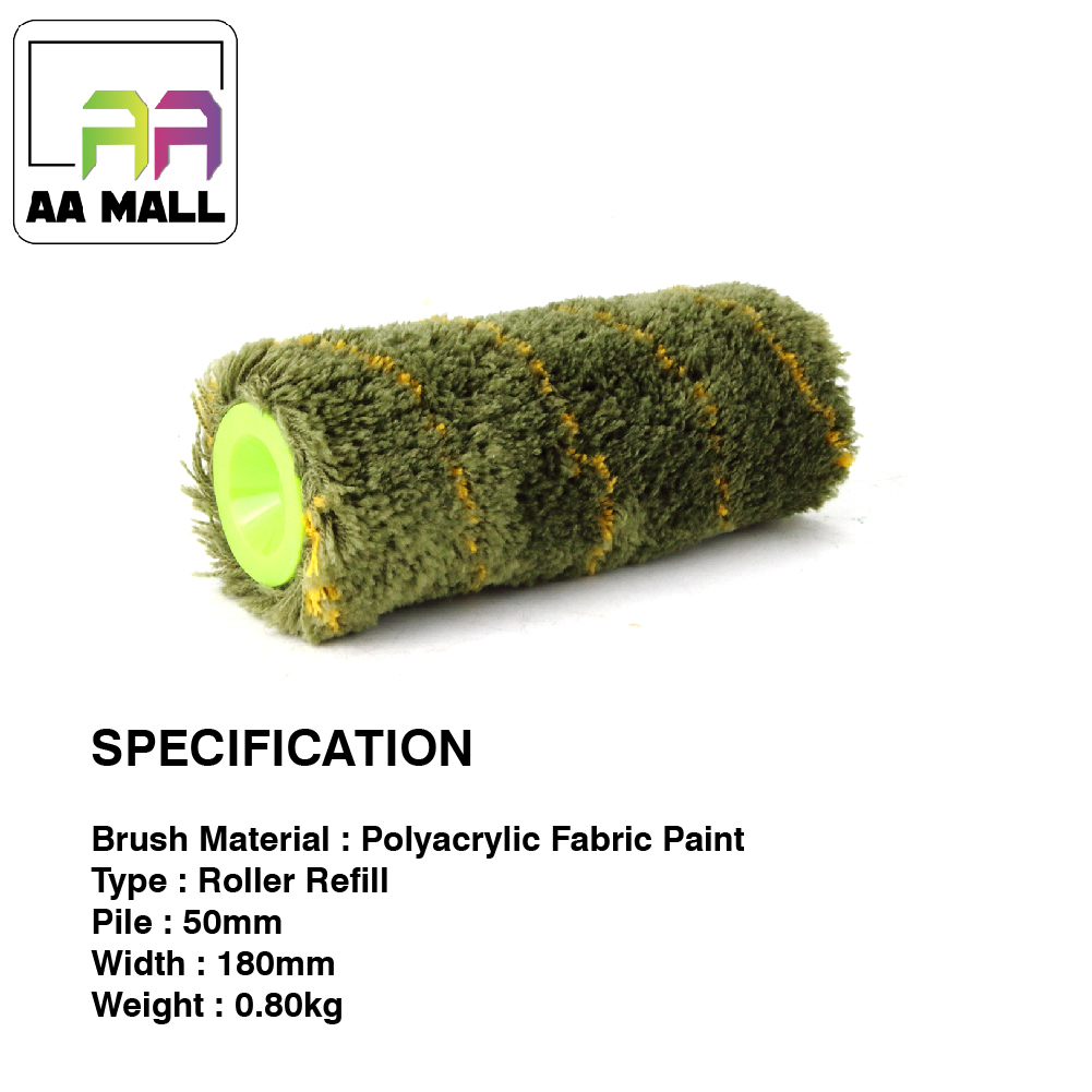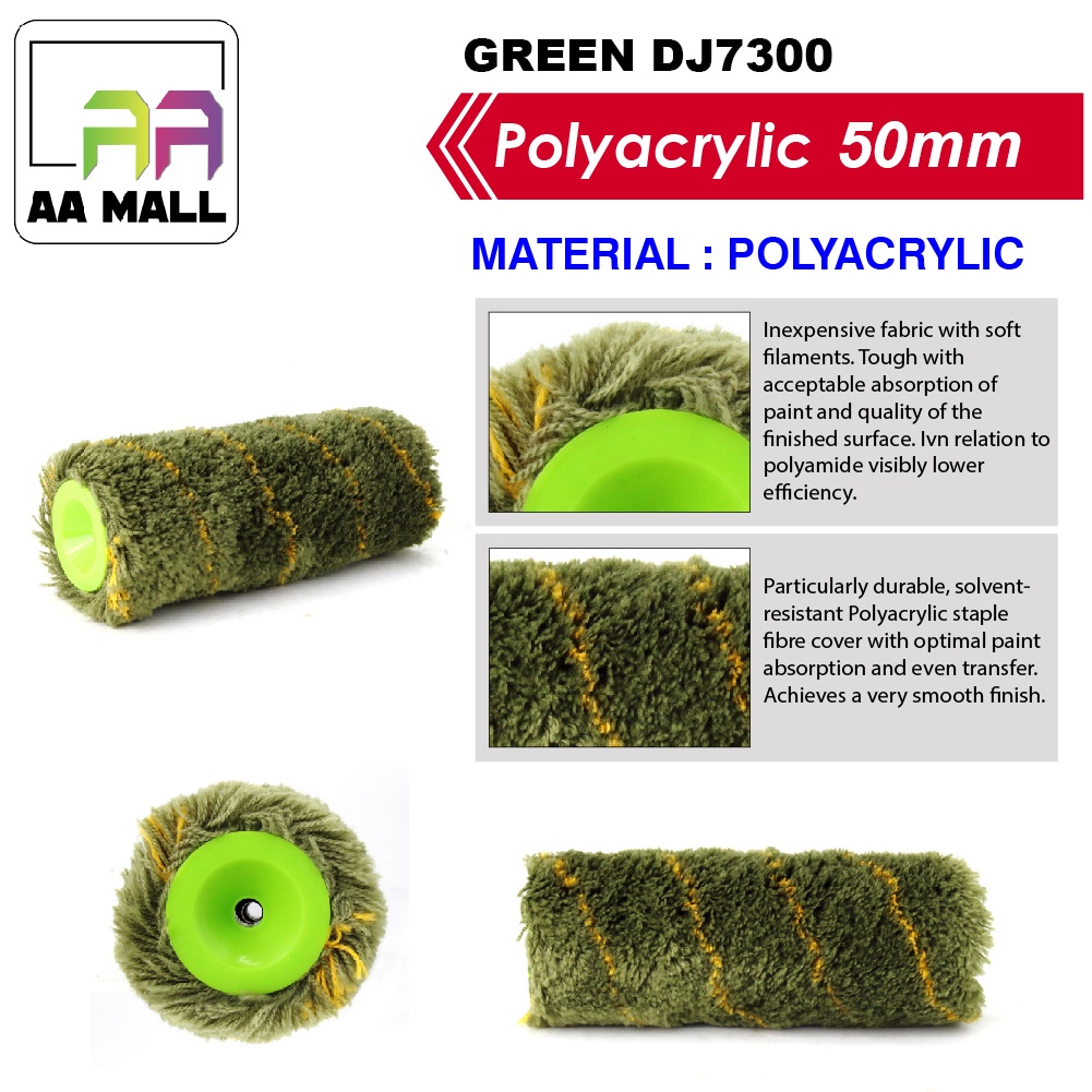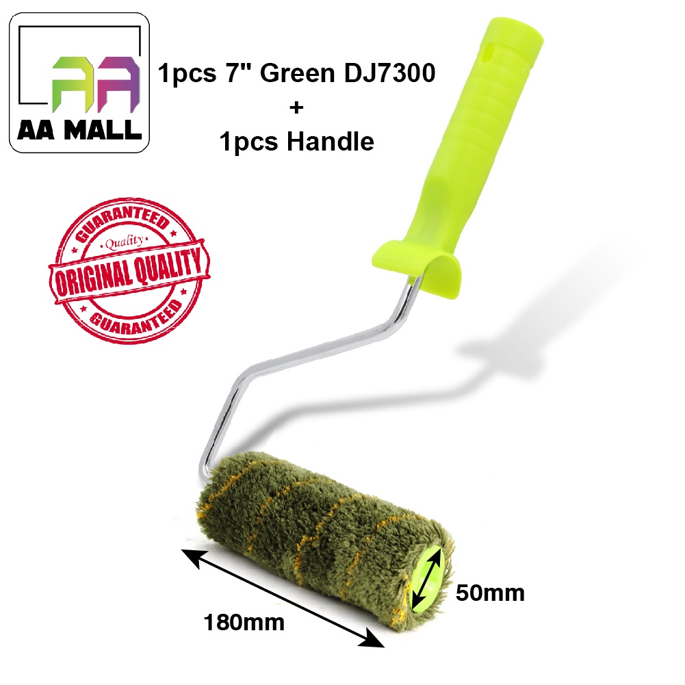 [1PCS FRAME HANDLE & 1PCS GREEN DJ7300 ROLLER REFILL] 7 inch High Premium Paint Roller Cover Refill 100% Polyacrylic