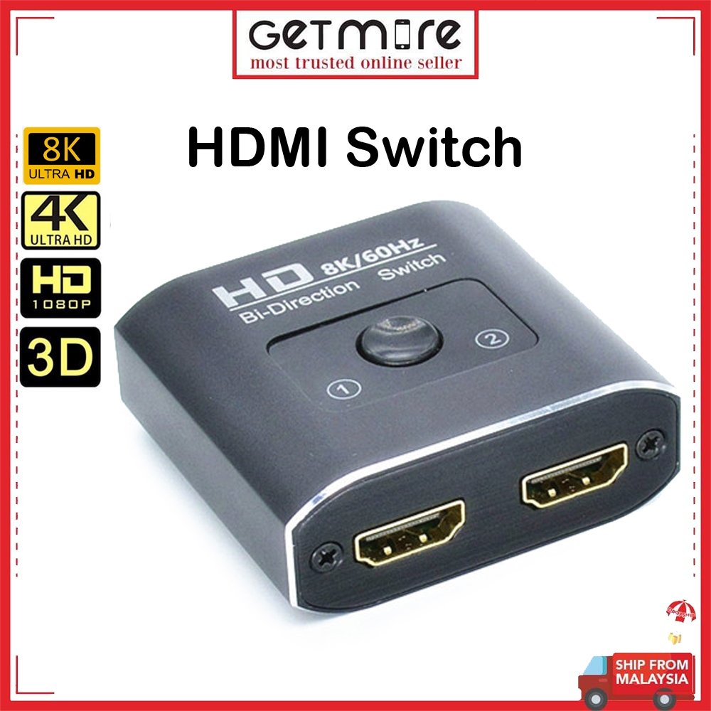 [2 Way] HDMI Switch 2 Ports Bi-directional 1x2 / 2x1 HDMI Switcher Splitter Ultra HD 4K 1080P 3D HDR HDCP PS4 Xbox HDTV