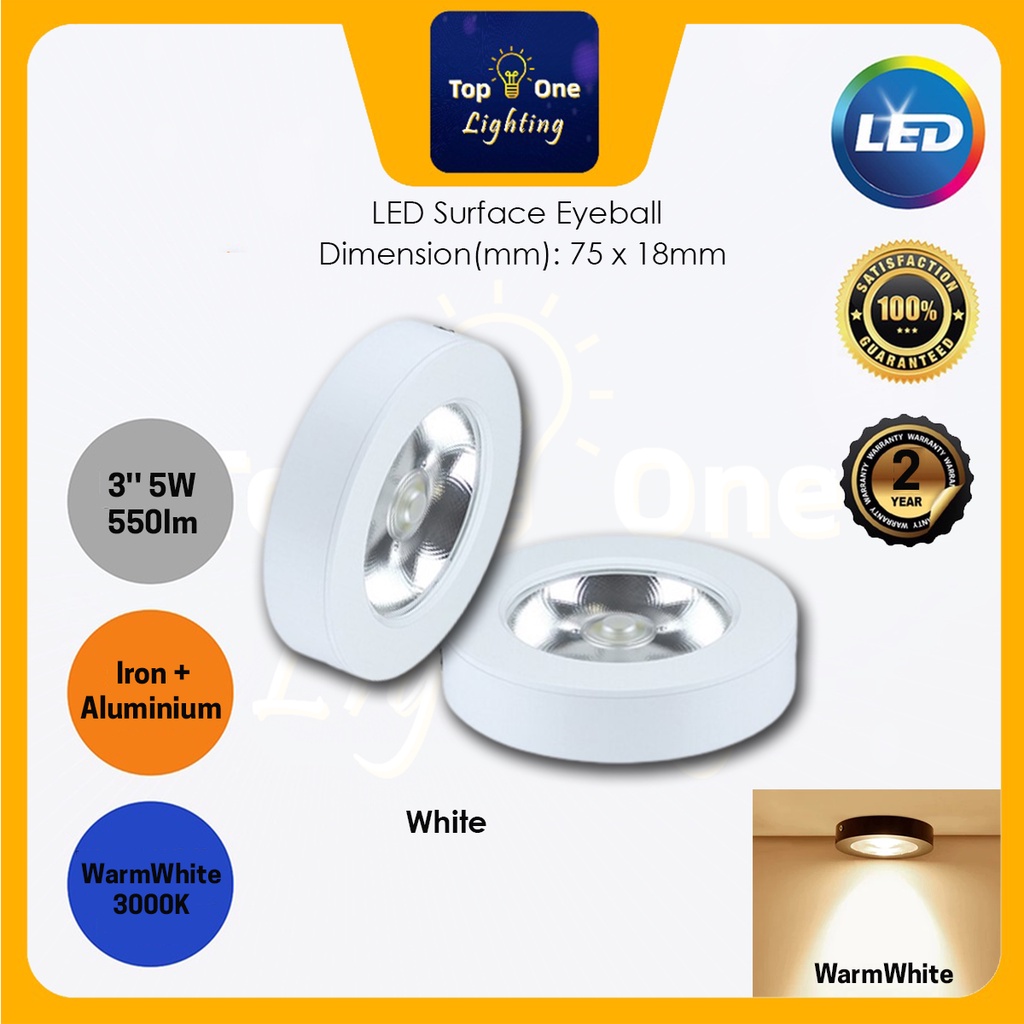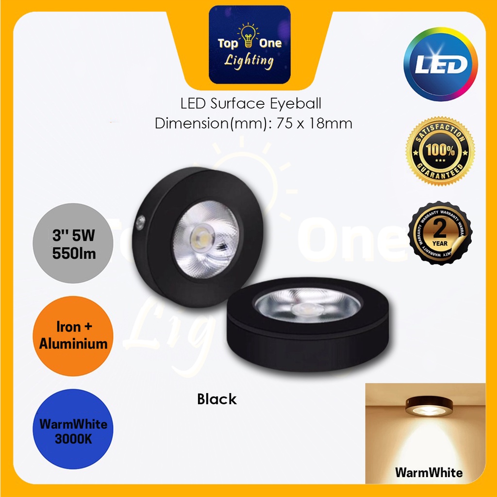 {2 YEARS WARRANTY} LED Eye Ball Spotlight 3'' 5W LED Surface Eyeball LED Downlight Black/White Surface Downlight