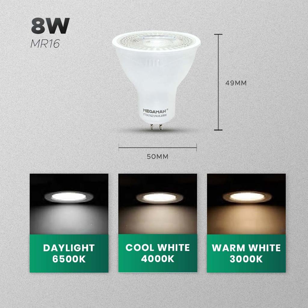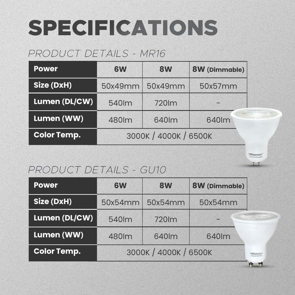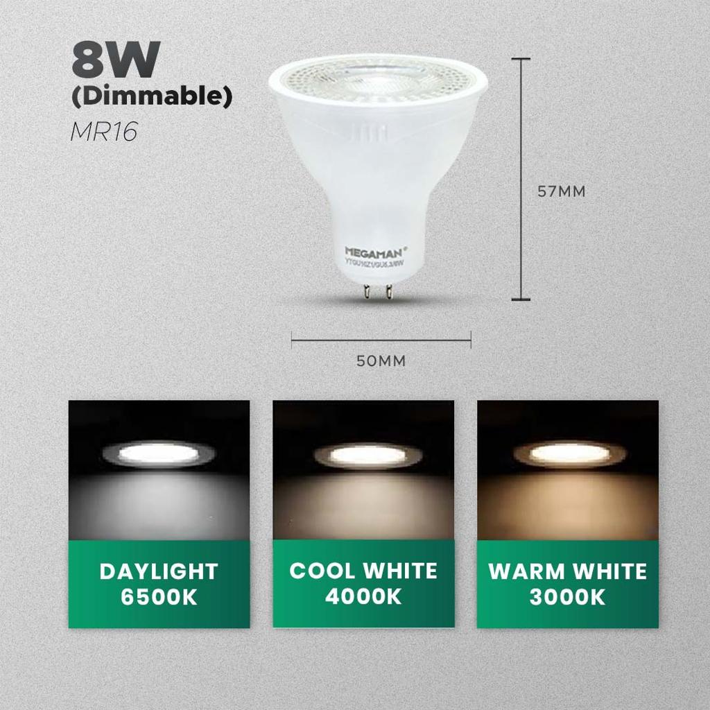 <2 YEARS WARRANTY> MEGAMAN 6W/8W 240V MR16(GU5.3)/GU10 DIMMABLE/NON DIMMABLE LED BULB
