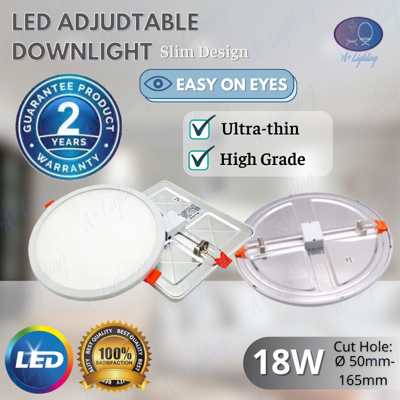[2 Years Warranty] ADJUSTABLE DOWNLIGHT 18W RECESSED LED DOWNLIGHT ROUND SQUARE CUT HOLE CEILING LIGHT lampu siling led