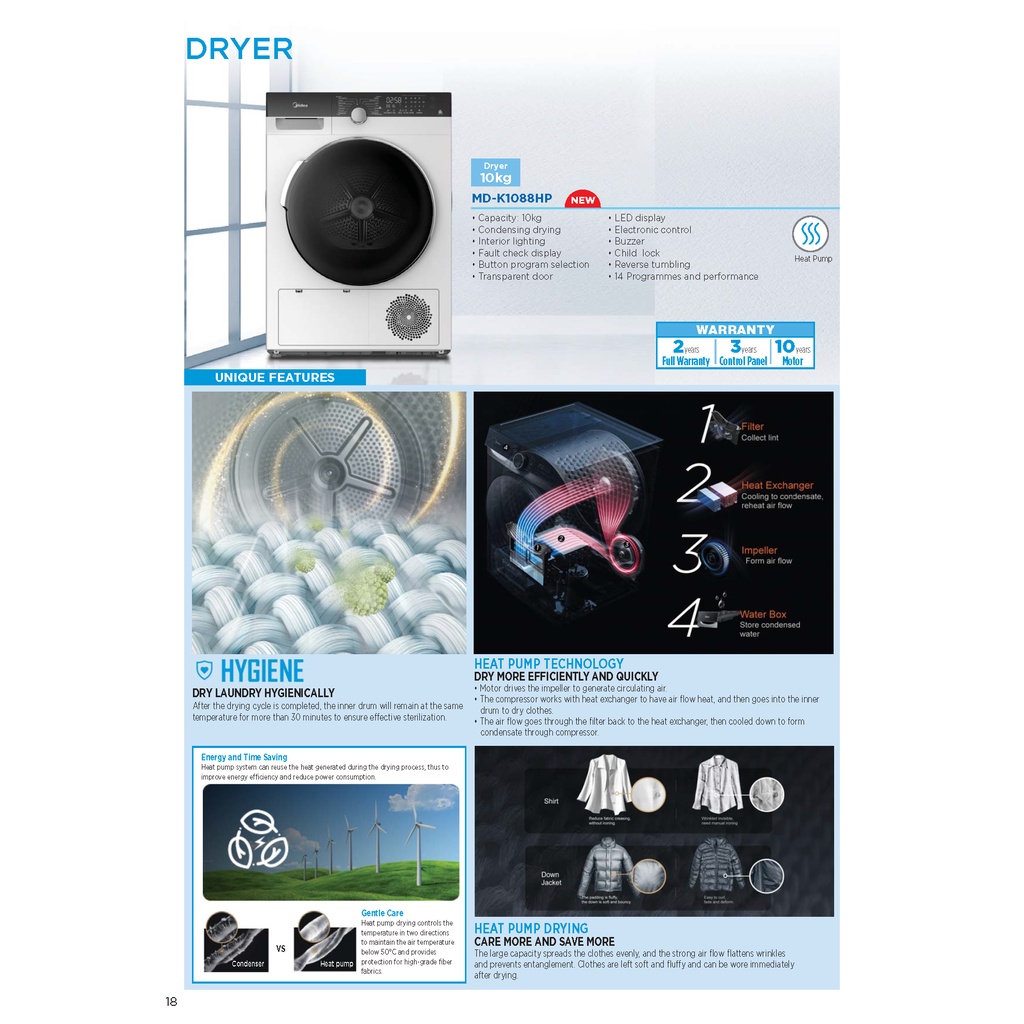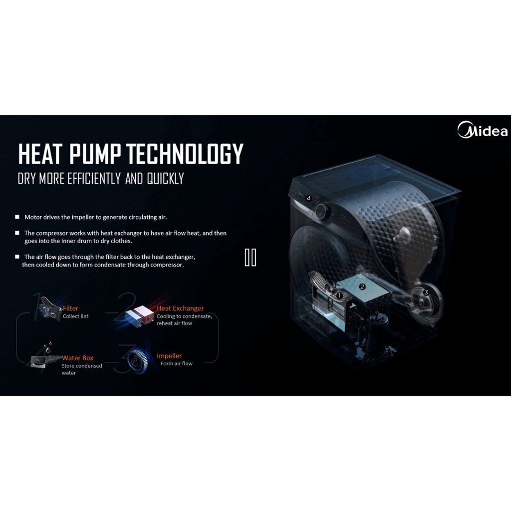[2022 May New Model] Midea Heat Pump Dryer 10kg MD-K1088HP Midea Heat Pump Clothes Dryer 10kg Pegering Baju Midea 10kg
