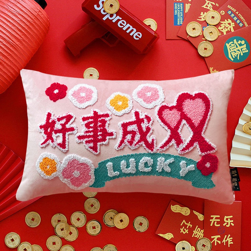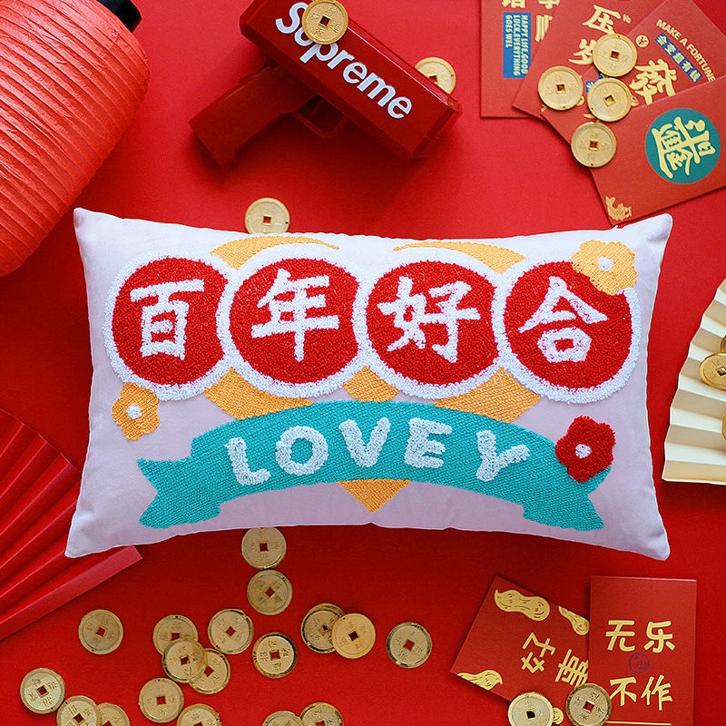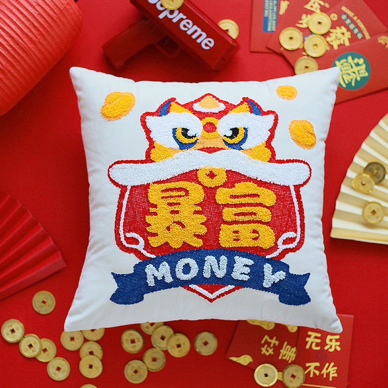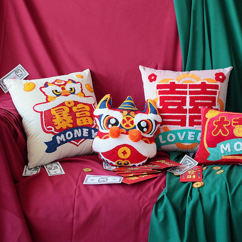 [2026 New Year] CNY LION Head Pillow, Chinese Festive Sofa Cushion Wedding Creative Chinese New Year Pillow