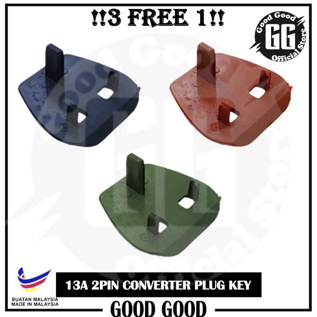 [3 FREE 1] 13A 2 Pin to 3 Pin Converter Adaptor Safety Plug Key / Easy for 2 Pin Plug(Random Color)