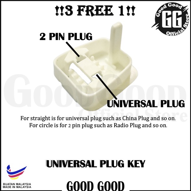 [3 FREE 1] 13A 2 Pin to 3 Pin Converter Universal Adaptor Safety Plug Key / Easy for 2 Pin Plug