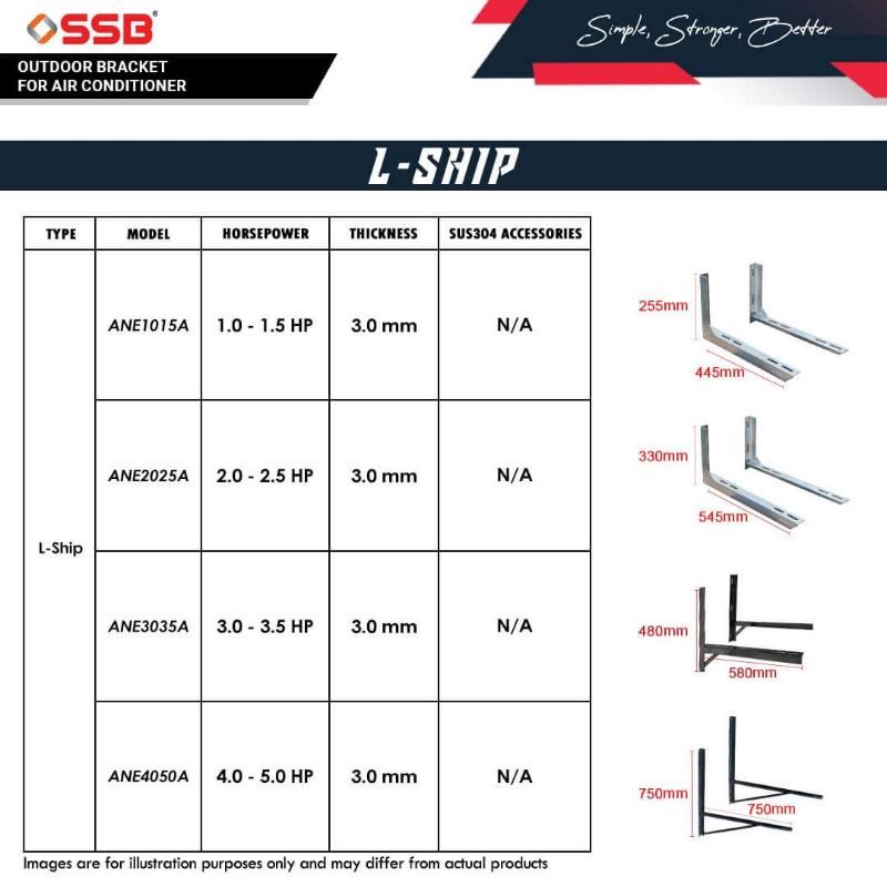 [3.0HP - 5.0HP] SSB Steel L-Ship Air Cond Outdoor Bracket / Compressor Bracket (3.0HP, 3.5HP, 4.0HP, 5.0HP)