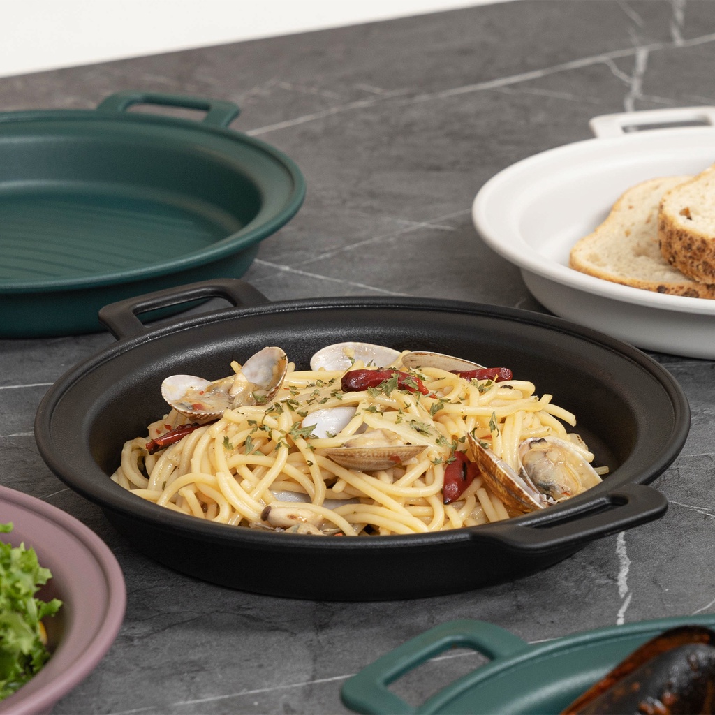 [4 pcs] Goodsdeco Plastic Plates SET of 4 - Camping Dinner Plates with Handles, Lightweight Unbreakable Reusable Outdoor Set, Microwave Dishwasher Safe(Round)