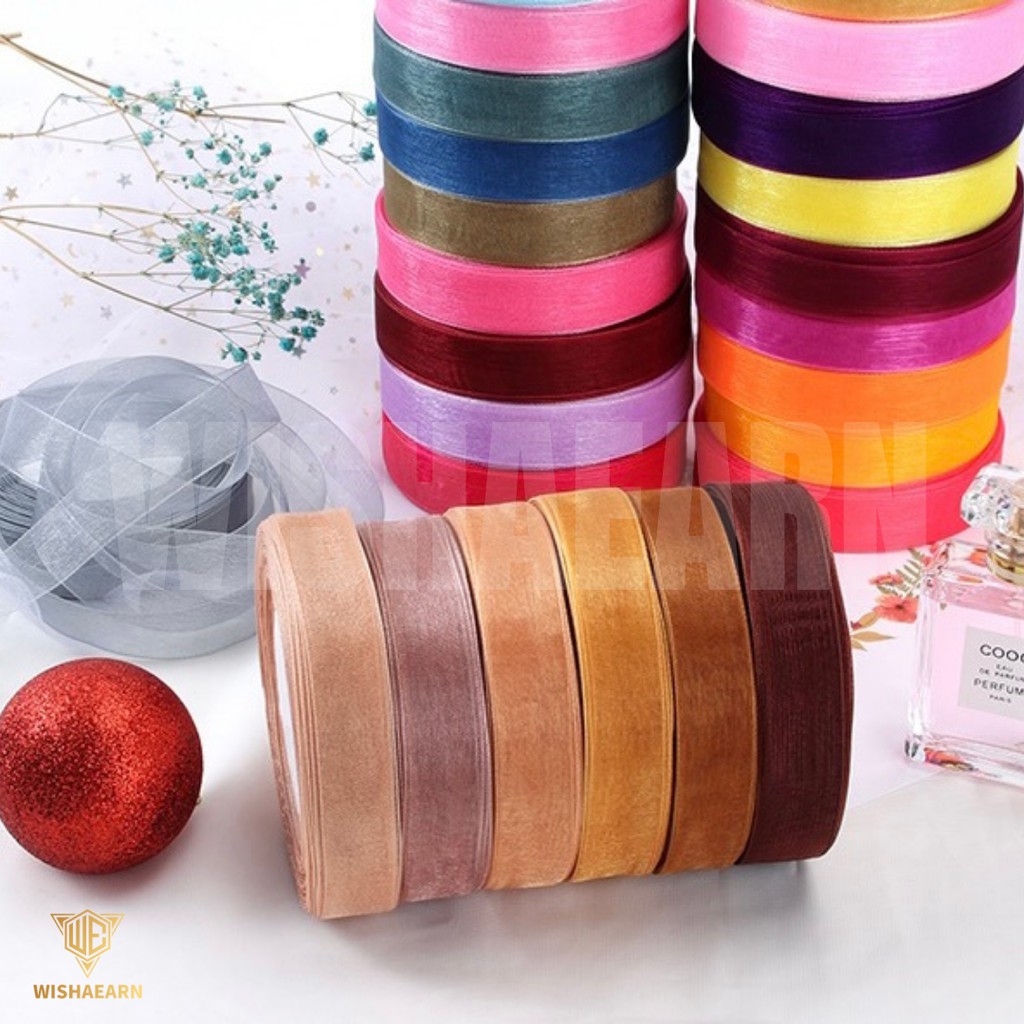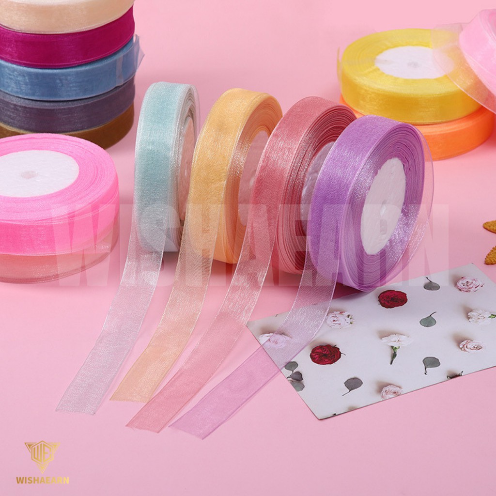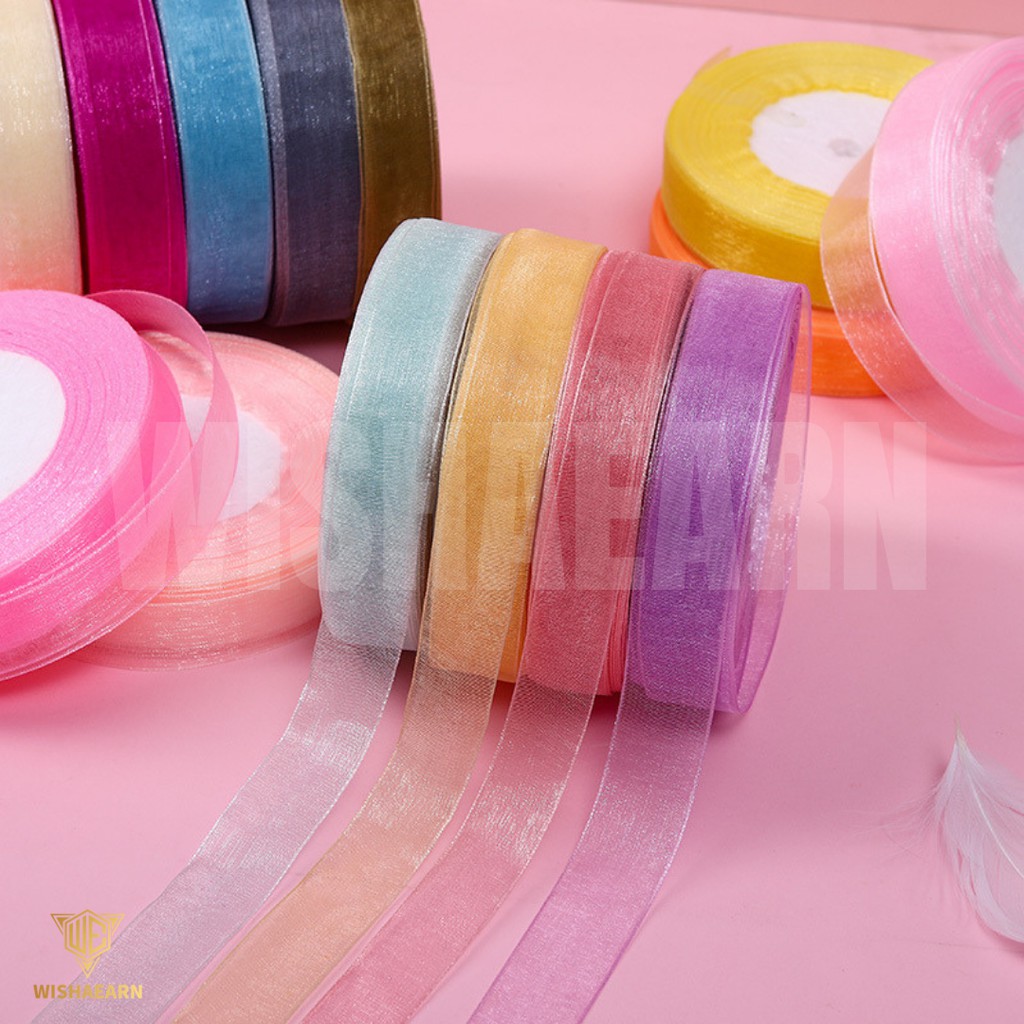 [45M] 2CM Lace Ribbon Riben Reben Ribben Satin Organza Gift Flower Bouquet Decoration Birthday Hadiah