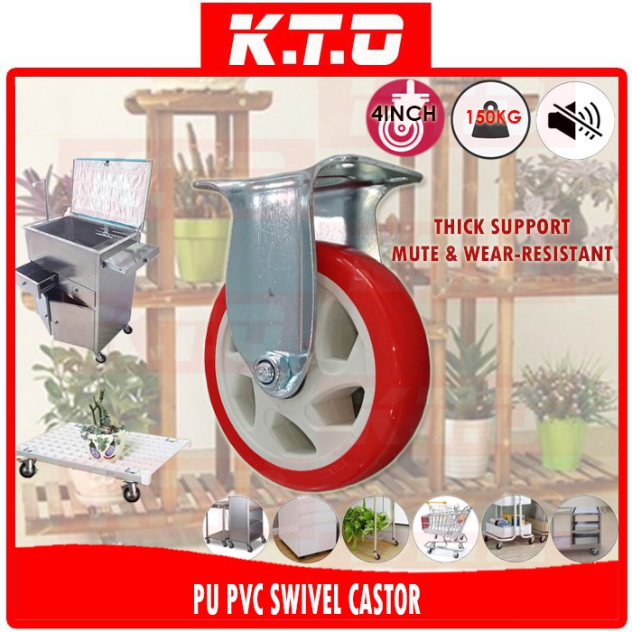 [4INCH, 5INCH] FRONT REAR PVC PU SWIVEL CASTOR WHEELS TROLLEY CASTER FURNITURE CASTERS UP TO 300KG / Tayar Troli