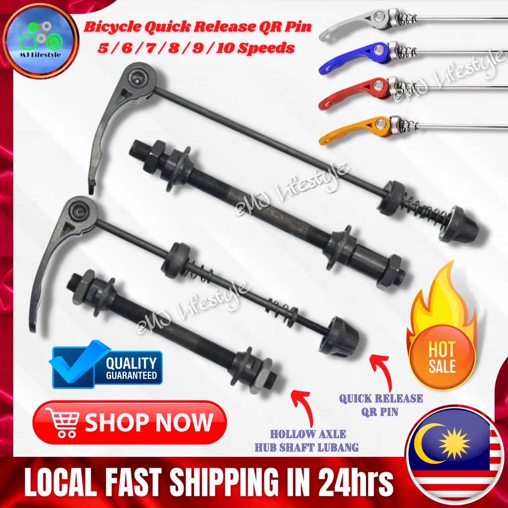 [5 Color] Bicycle Wheelset Hub Quick Release QR Pin & Hollow Axle 6/7/8/9/10 Speed Bike Rim Shaft Lock Basikal MTB Road