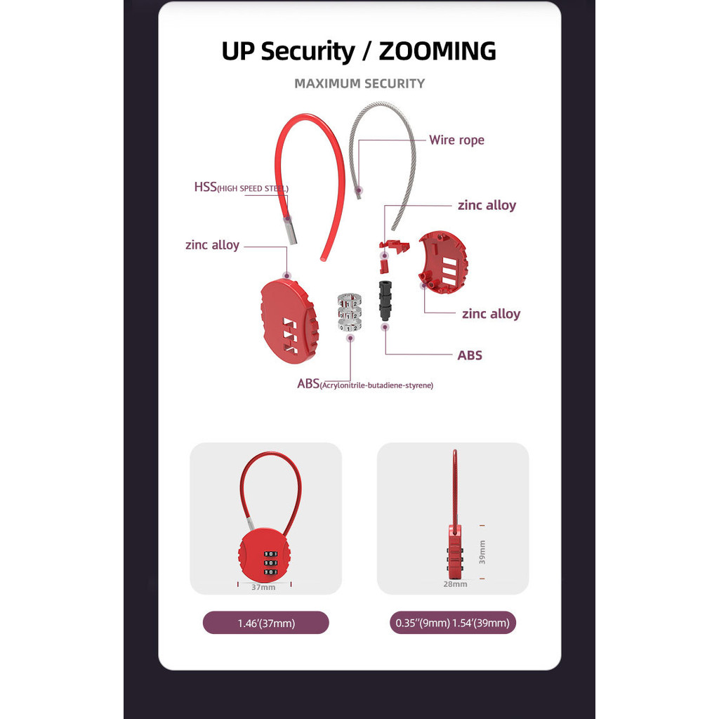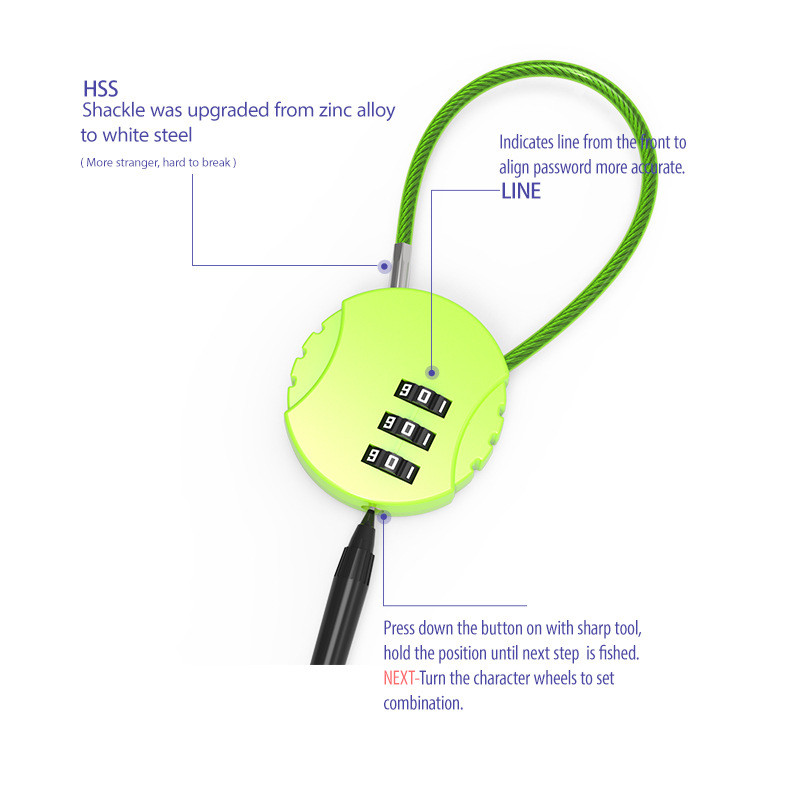 [5 Colors] Safe Secure Lock Metal Wire Rope Combination Digit Backpack Trolley Mini Cable Lock