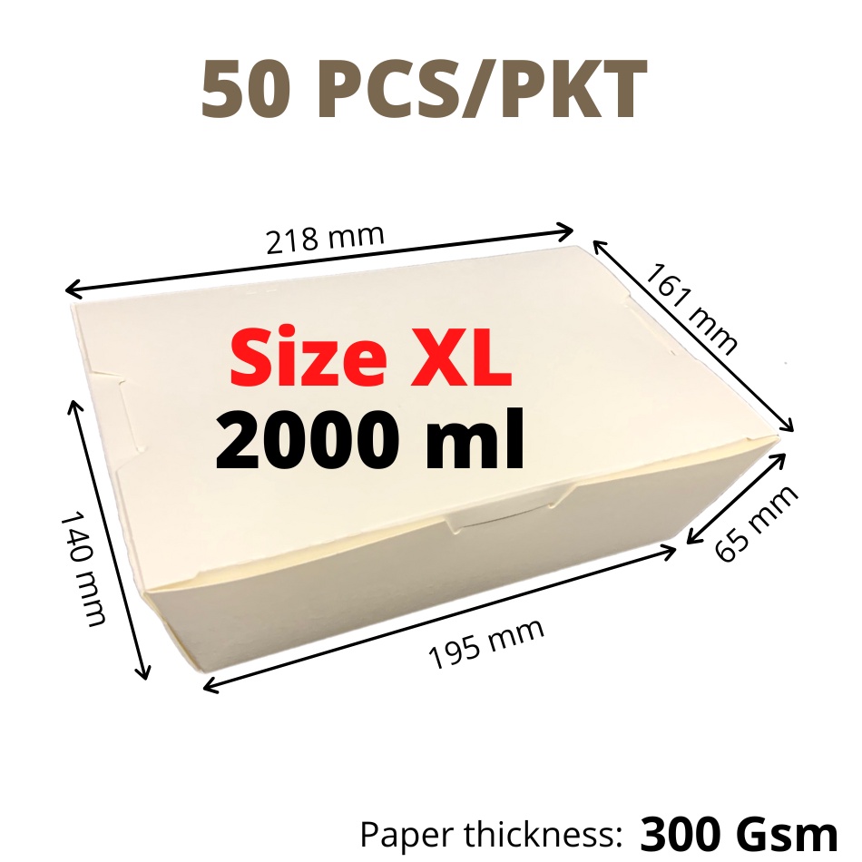 [50 Pcs] PREMIUM WHITE PAPER LUNCH BOX Bento Box Paper Food Box Disposable Container Take Away Recyclable Kraft