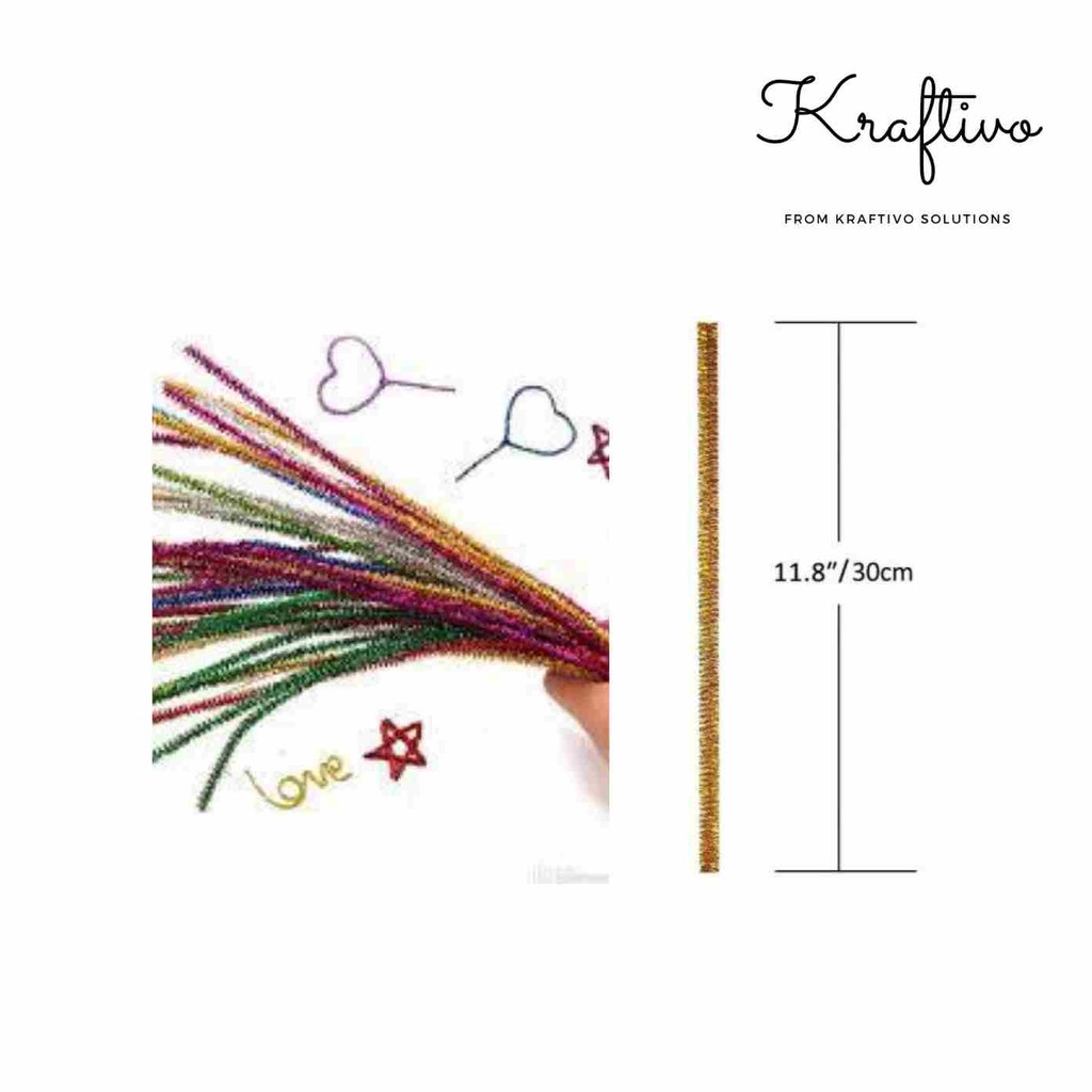 [ 50 STICKS ] ASSORTED COLOUR DIY GLITTER PIPE CLEANER / DIY CRAFT CHENILLE STEMS 50'S/ART & CRAFT