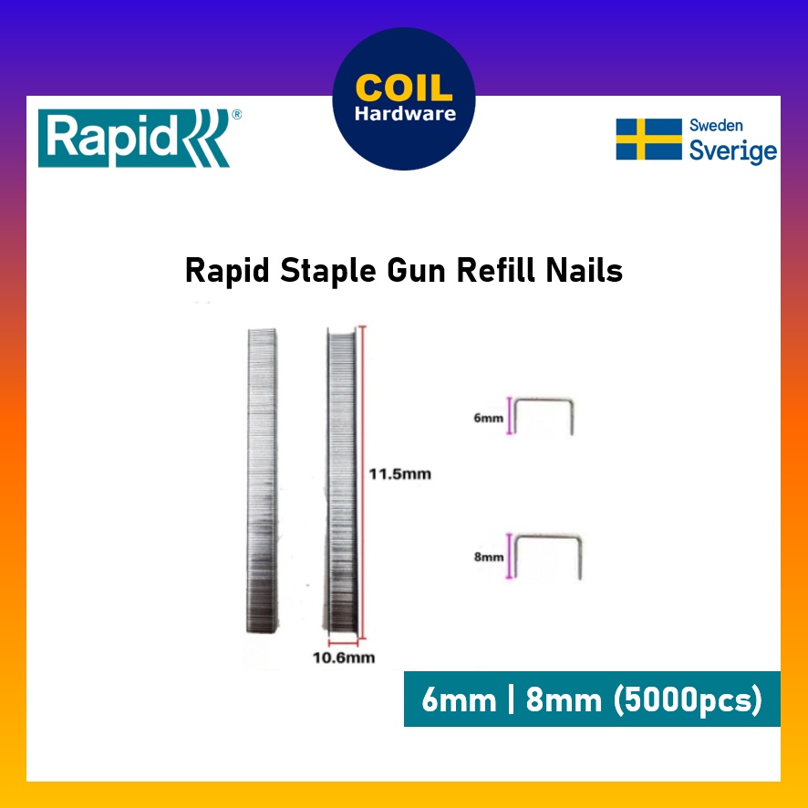 [5000 PCS] 6mm | 8mm RAPID23 Staple Gun Refill Nail | Bullet | 6mm | 8mm