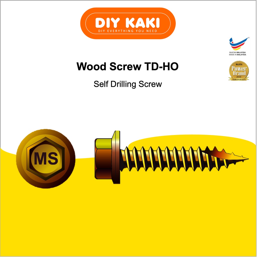 [500pcs] Wood Tapping Screw TD-HO | Self Drilling Screw | Skru Kayu Bumbung Ekor Tajam ( Loose ) | MK BRAND