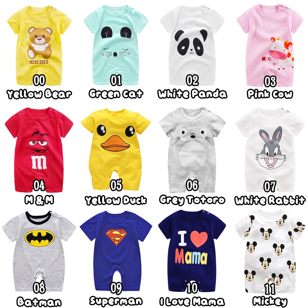 [59cm-80cm][Lamoda]BIBI Newborn Baby Girl or Boy Cartoon Animal Short Sleeve Rompers Baju Bayi Soft Toddler Jumpsuits