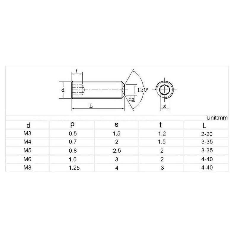 [5pcs] M3 M4 M5 M6 M8 Headless Set Screw Grub Metric 304 Stainless Steel Hex Allen Socket Head Screw