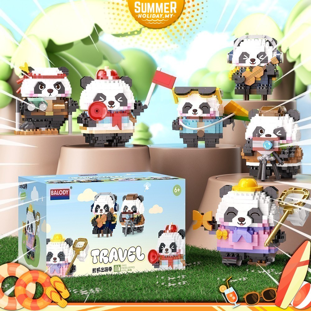 [6 IN 1] Balody Block 16411 Travel Panda Outing Series Mini Bricks Gift Decoration Building Brick