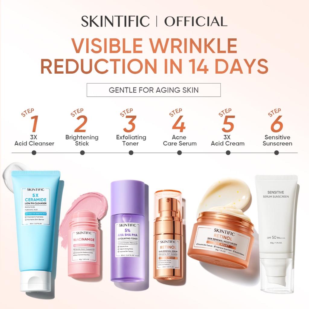 <6pcs Skincare Set>SKINTIFIC Brightening Anti dark spot Glowing-Moisturizer,Sunscreen,Serum,Clay Mask Stick,Cleanser