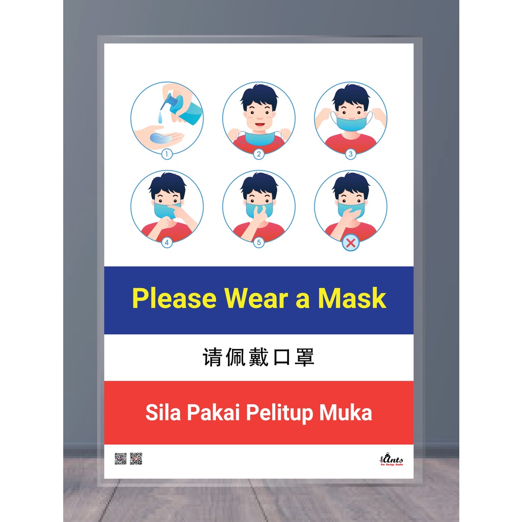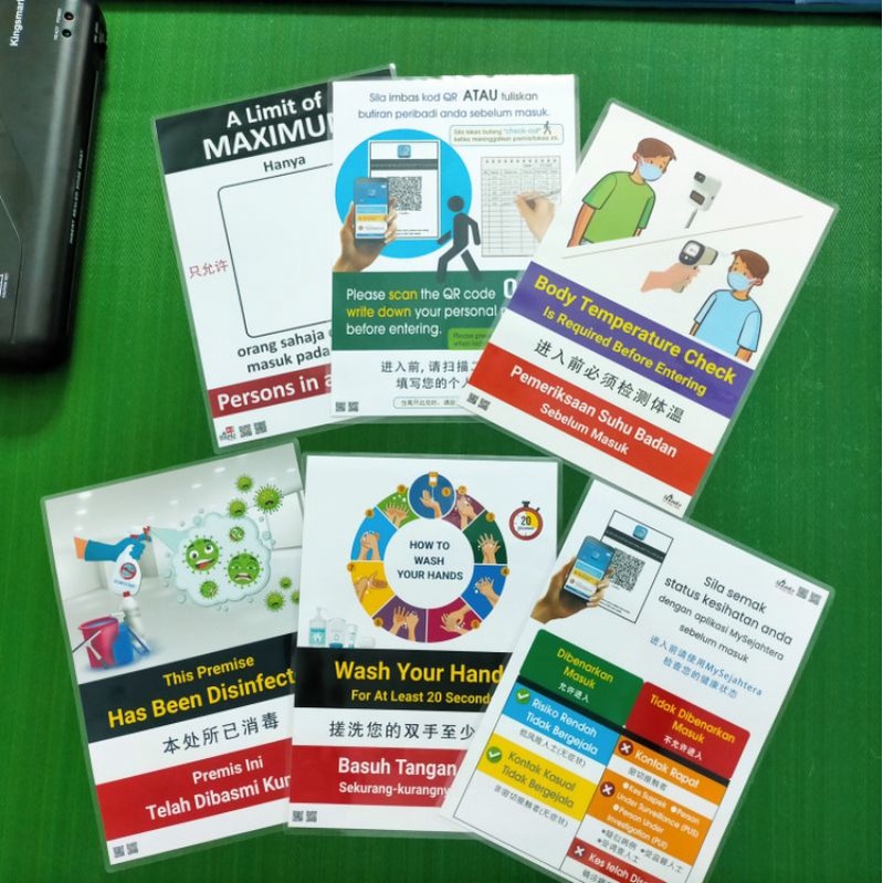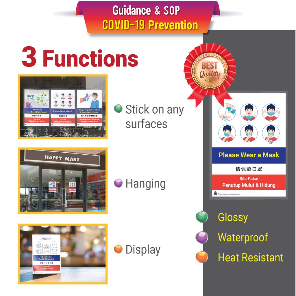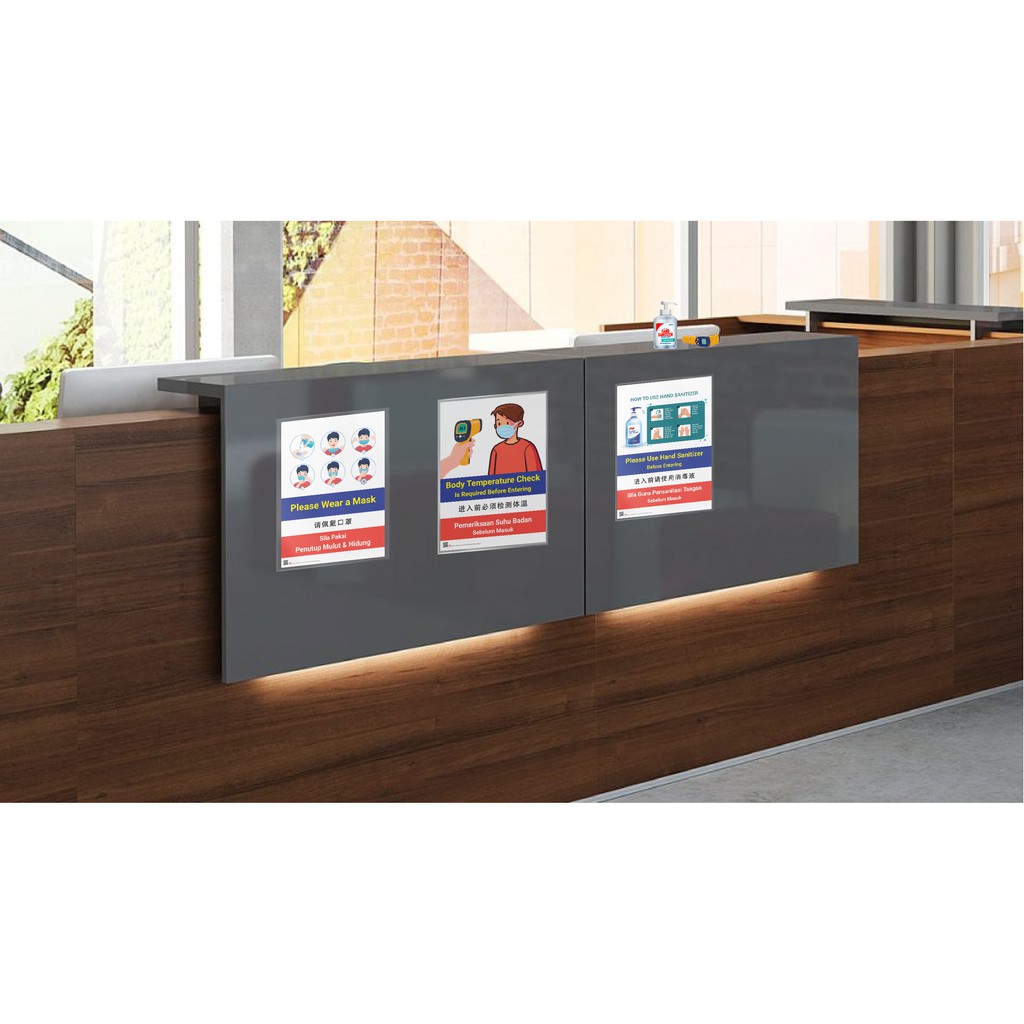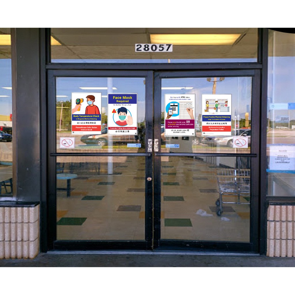 [A4 laminated poster] Sign Signage wear mask hand sanitizer thermometer physical distancing wall decor no entry sticker