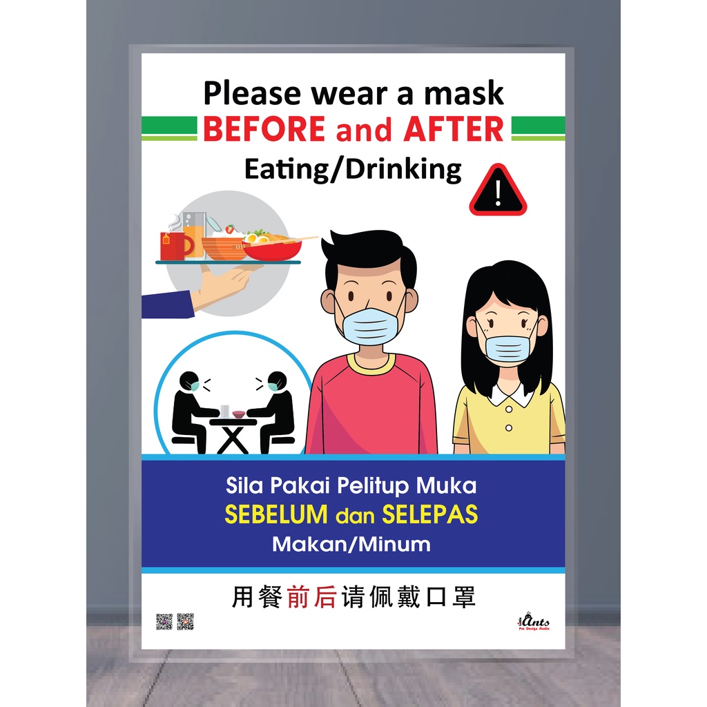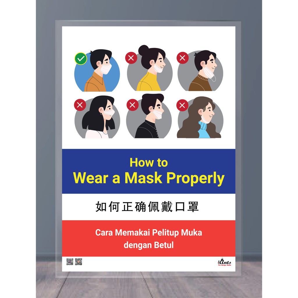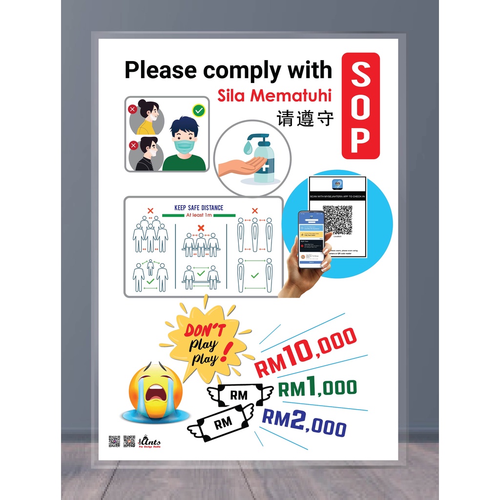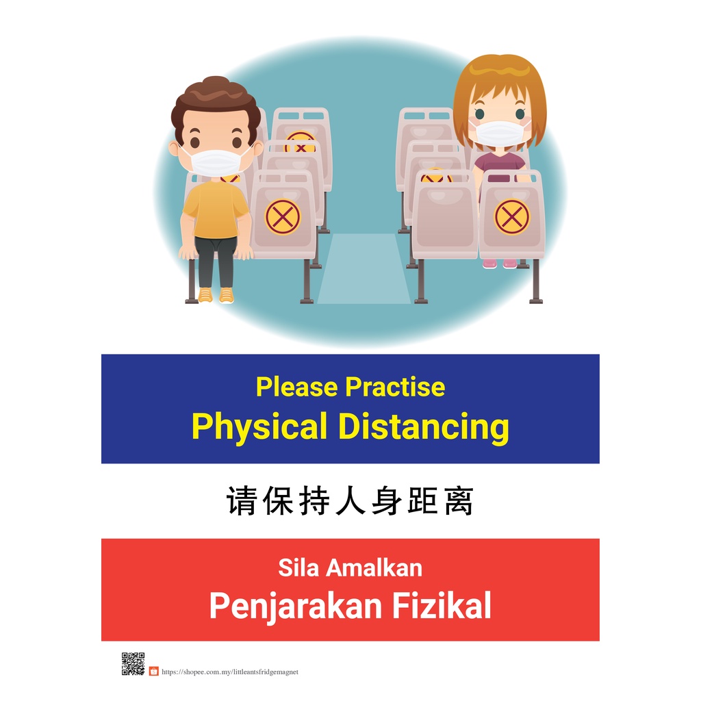[A4 laminated poster] Sign Signage wear mask hand sanitizer thermometer physical distancing wall decor no entry sticker