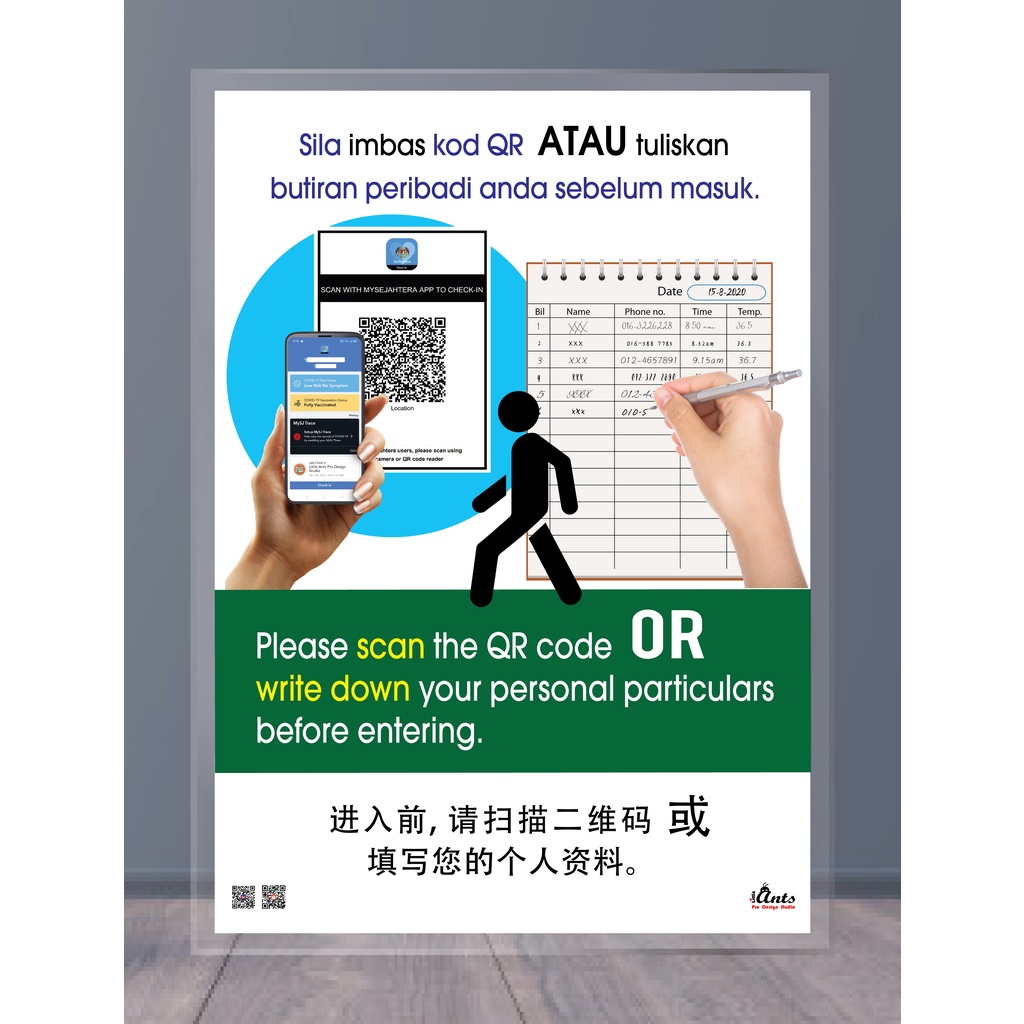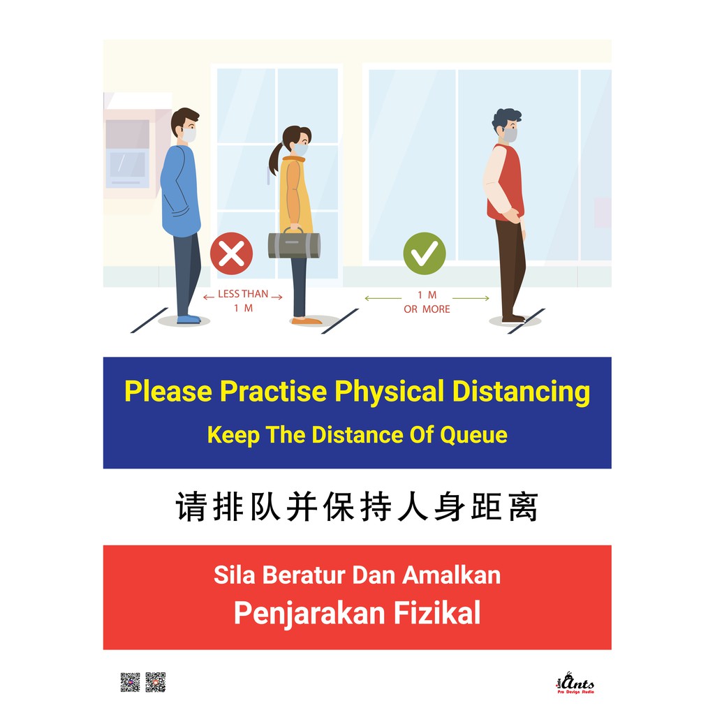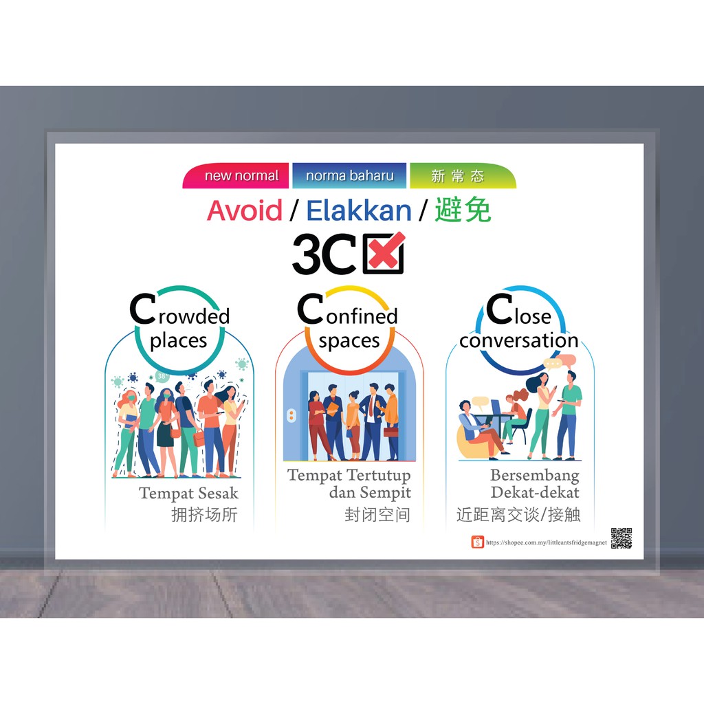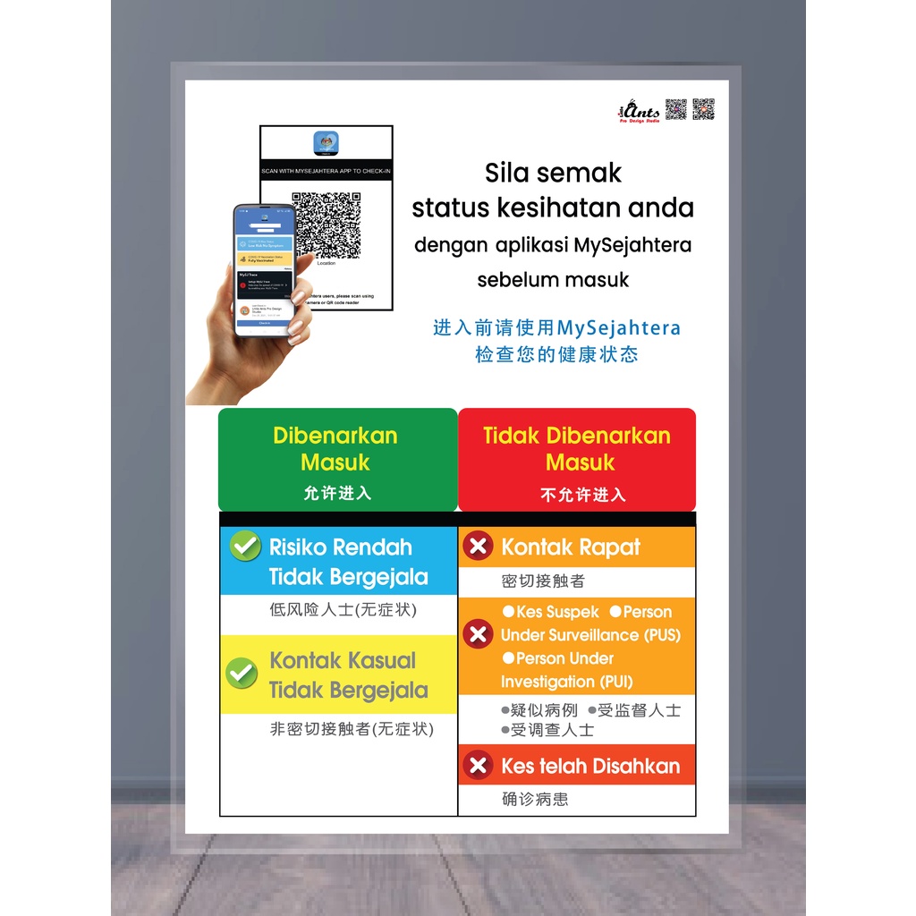 [A4 laminated poster] Sign Signage wear mask hand sanitizer thermometer physical distancing wall decor no entry sticker