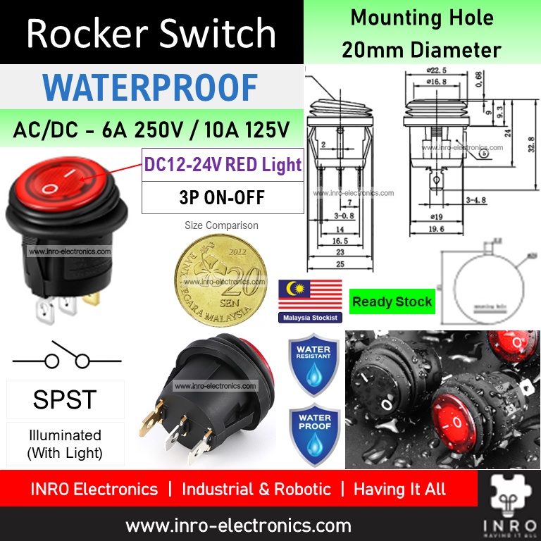 [AC DC] Round Waterproof 2 Pin 3 Pin Round Rocker Switch AC 240V On-Off-On / On-Off Car Round Rocker Switch Suis Rocker