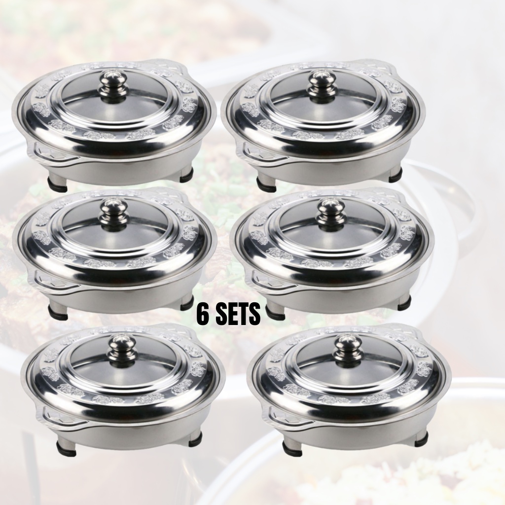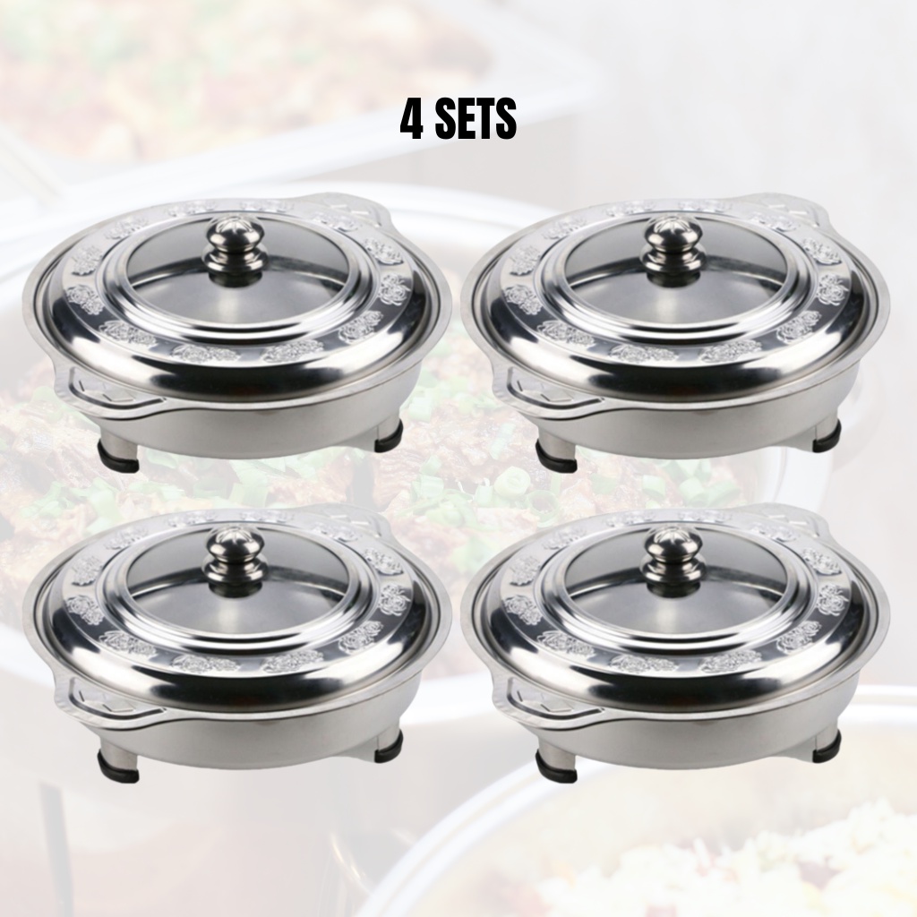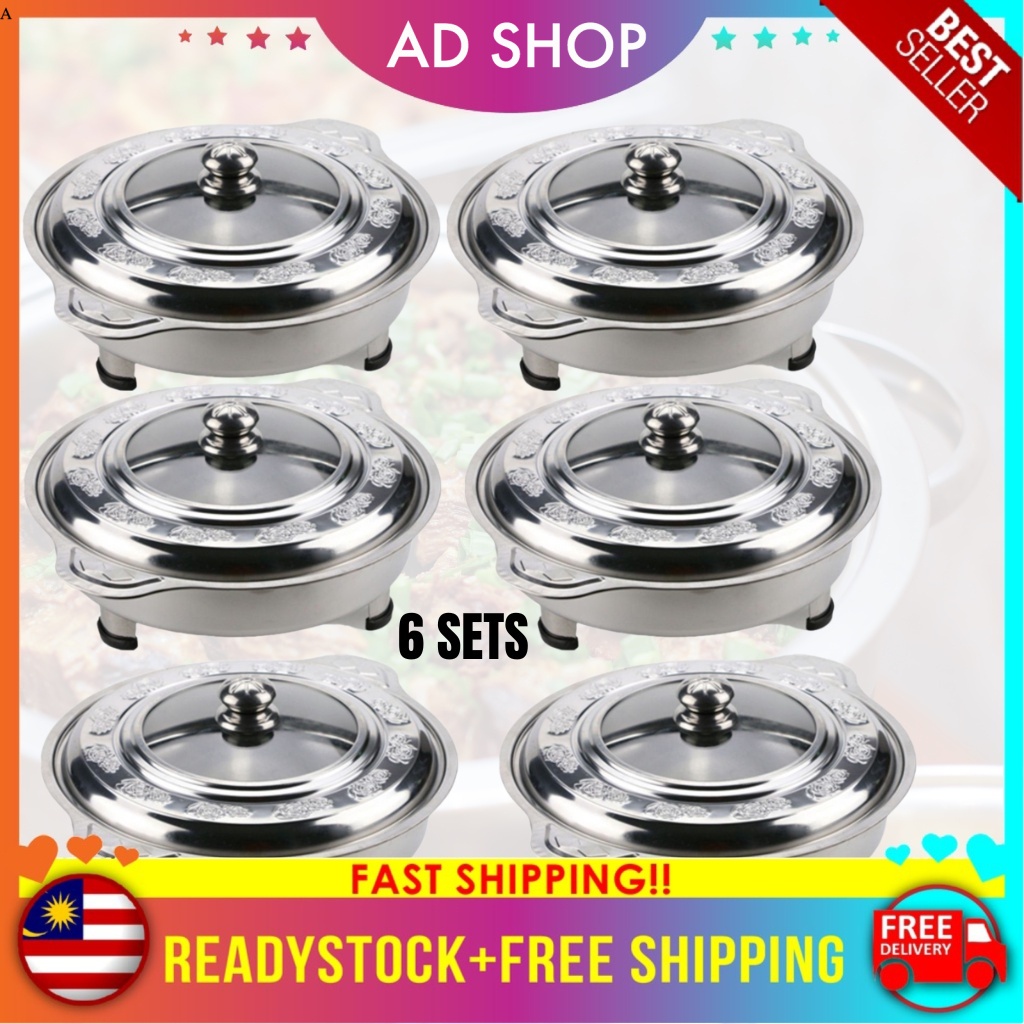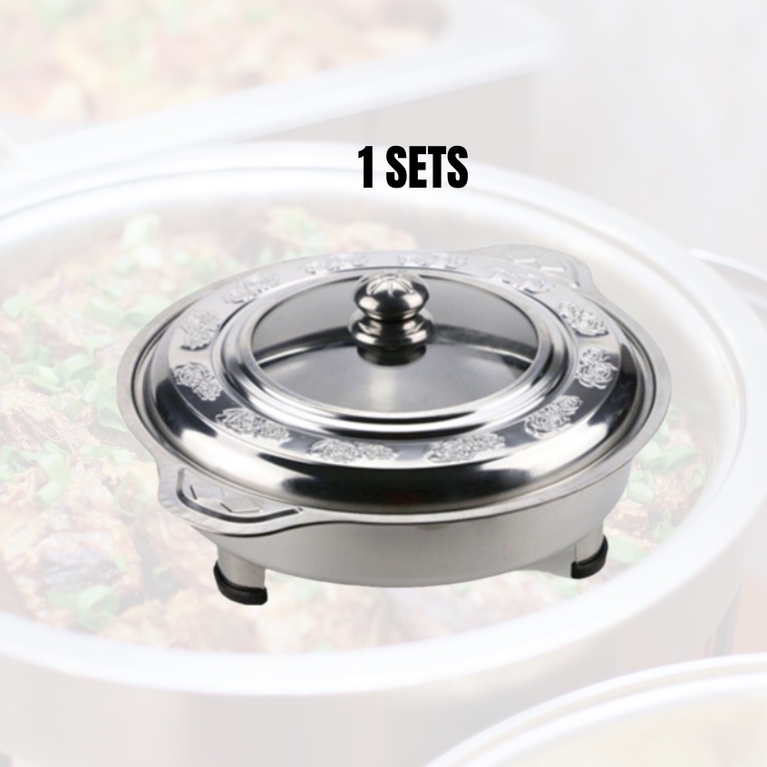 [AD SHOP] 31cm Round Embossed Glass Stainless Steel Buffet Set Catering Serving Tray Food Pan Bekas Katering Serbaguna