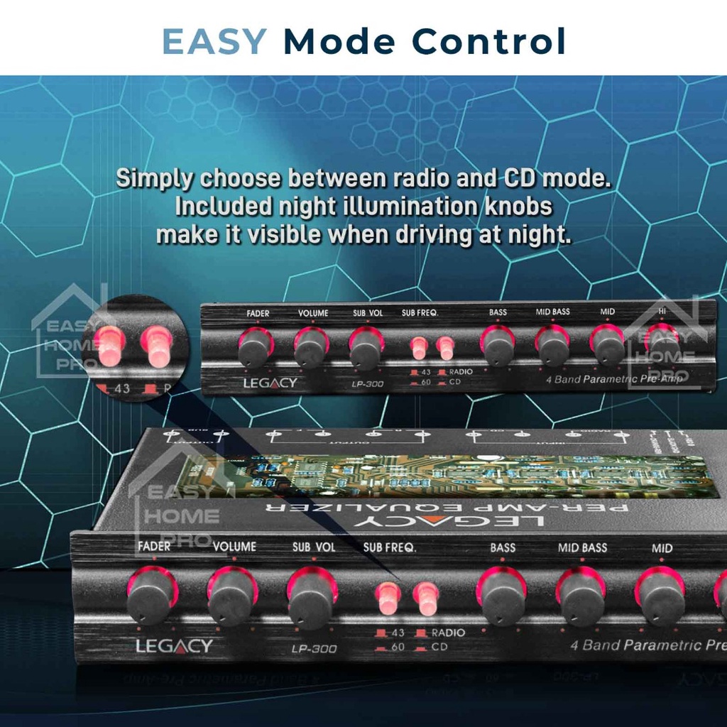 <ALUMINIUM PANEL>LEGACY LP-300 4-Band Car Pre-Amp Car preamp 4band Parametric Preamp Preamplifier with Subwoofer Output