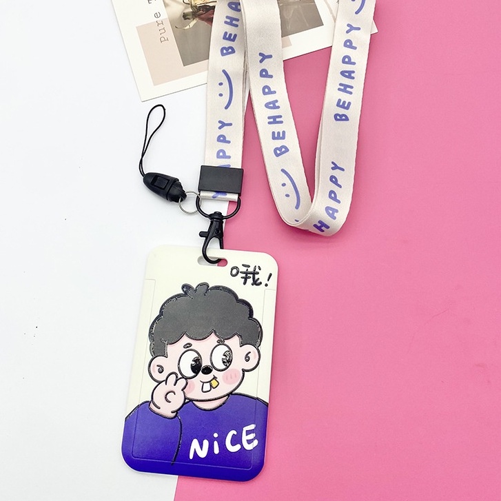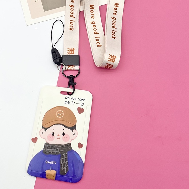 [ANYA] Couple Lanyard Card Holder Bus Card Cover With Neck Lanyard Cute Cartoon Hanging Neck Cute School & Office