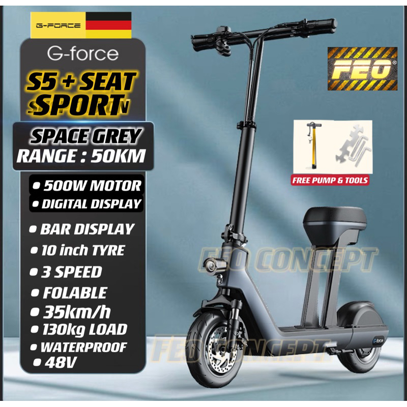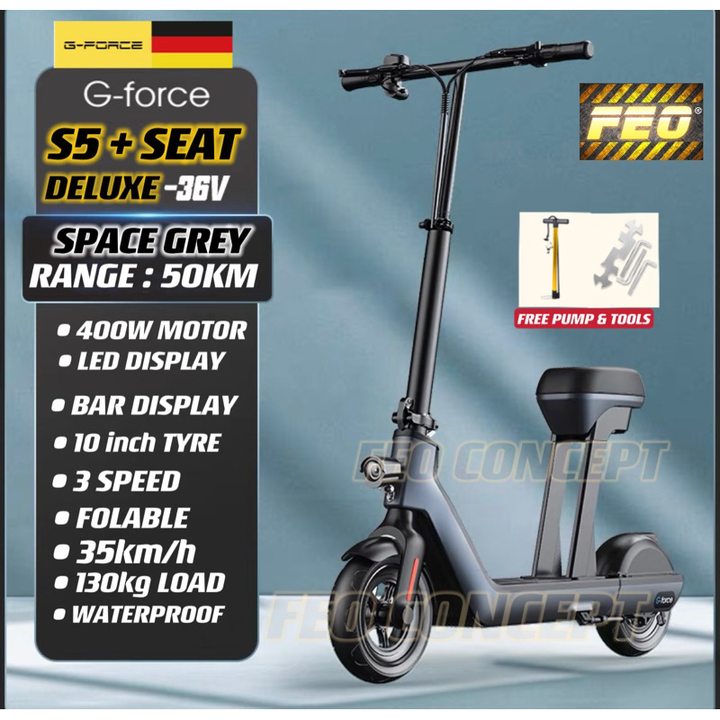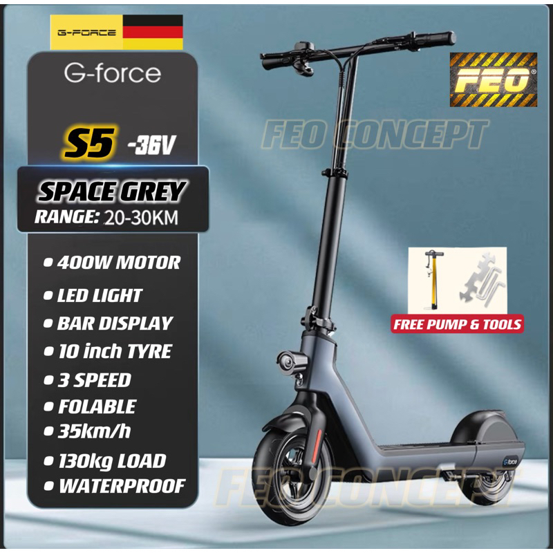 [50KM]FEO 10 Inch G-Force S5 Electric Scooter Adults Foldable Scooter E Scooter Lightweight LED Light Skuter Electric