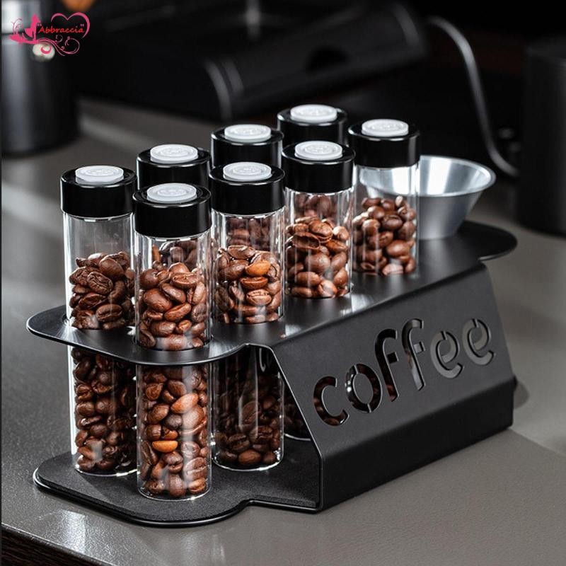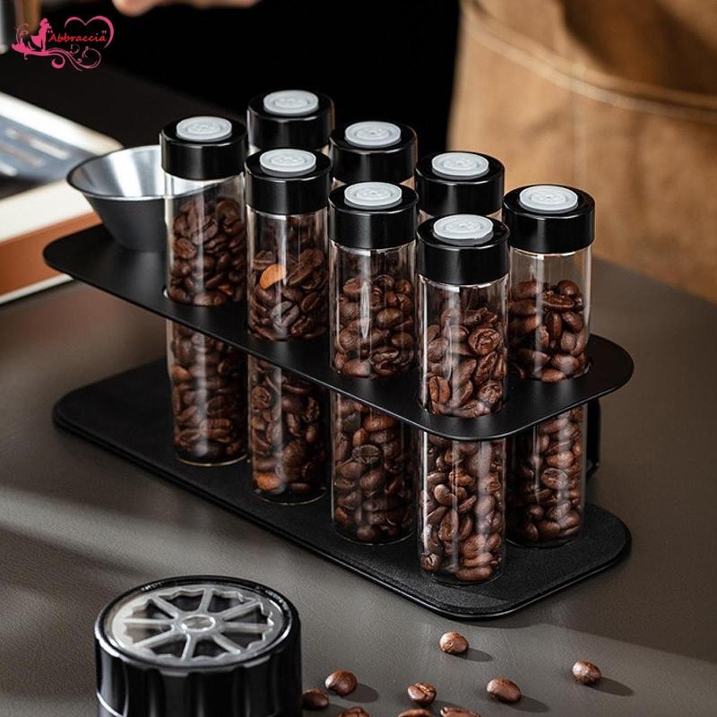 [Abbraccia] Single Dose Coffee Bean Storage Tubes, Glass Vials, Sealed Lid, Clear Food Organization, 8 Tubes,