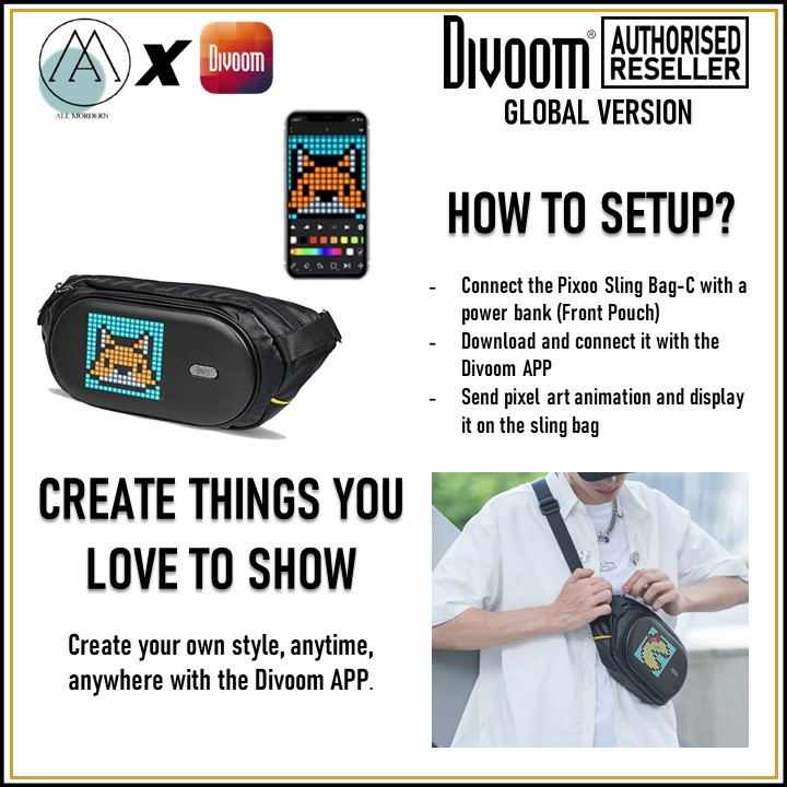 [Authentic] Divoom Pixoo Sling Bag-C Global Version Smart LED RGB Pixel Art Waist Bag Chest bag Retro SlingBag AM