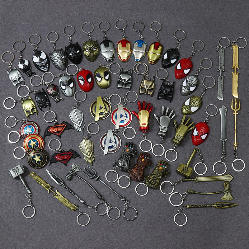 < Available > Alloy Avengers Keychains Hulk Glove Thor Storm Axe Captain America Shield Batman Mask Key ring Bag Pendant